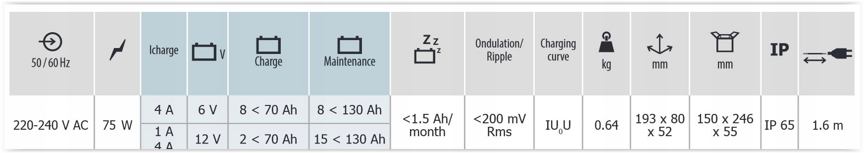 Artic 4000 (4a) предназначен для зарядки батарей с напряжением 6 В и 12 В, таких как автомобили, мотоциклы. Обеспечивает автоматическую зарядку в 2 раза быстрее, чем традиционные зарядные устройства, контролируемые микропроцессором.