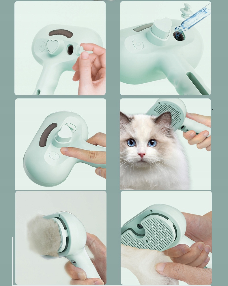 Наша паровая щетка для кошки оснащена паровой технологией, которая эффективно удаляет пыль и грязь из меха кошки, обеспечивая свежесть и чистоту вашего пушистого друга. Примечание. Паровая щетка нашей кошки может превращать воду в спрей, а не на тепло!