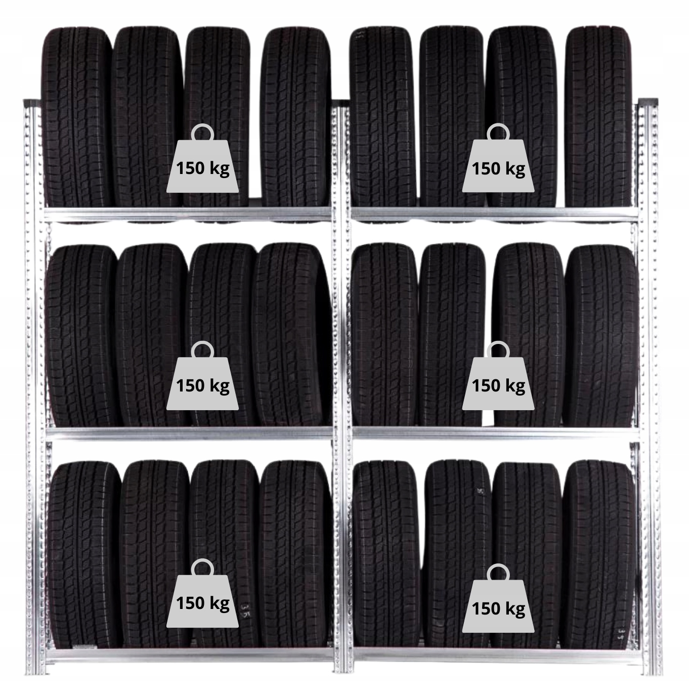 Стелаж для шин, дисків, 24 шт., оцинкована сталь, набір 2x МІЦНИЙ І МІЦНИЙ