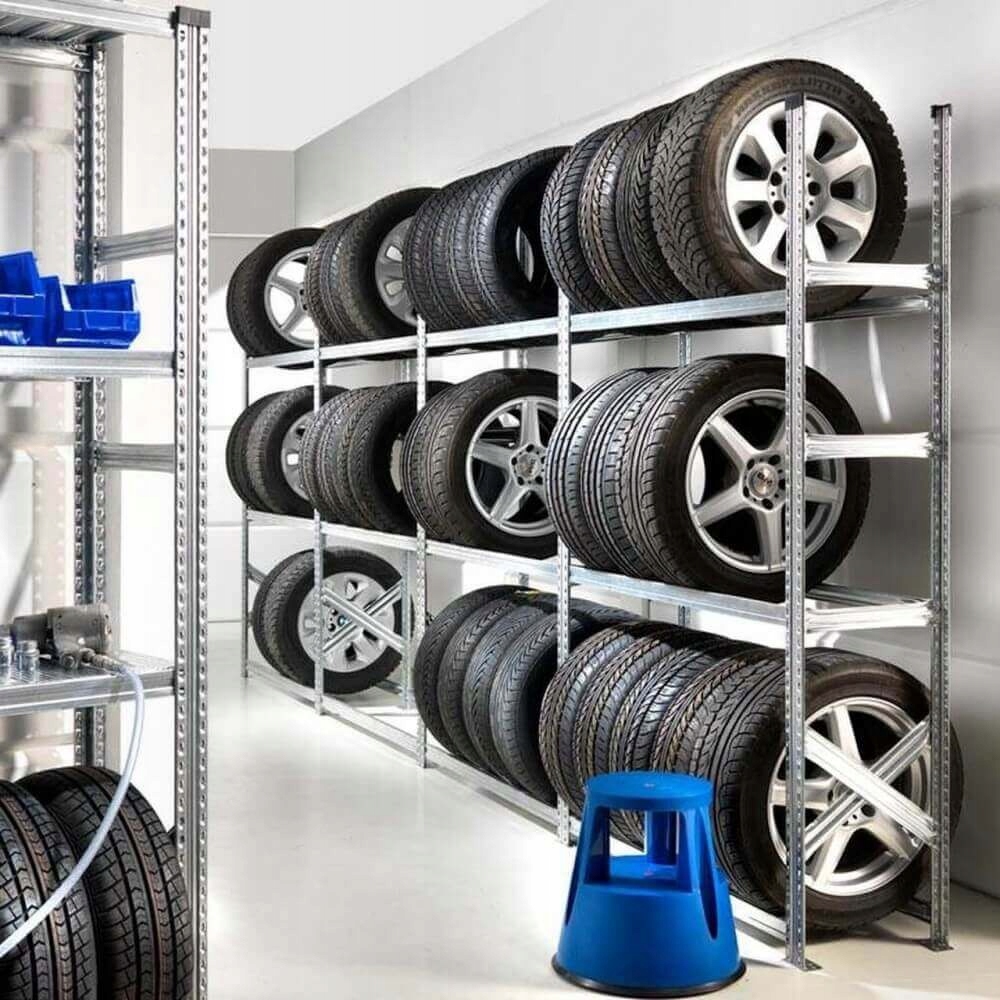 Функциональный и прочный стеллаж для хранения шин или колес для профессиональных мастерских, сервисных центров, складов шин, шиномонтажей, а также домашних гаражей и подвалов.