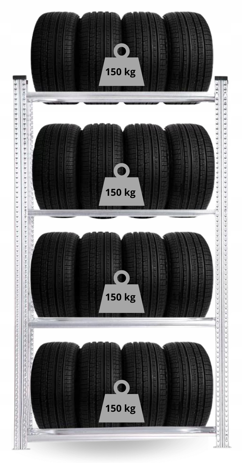 СТОЙКА ДЛЯ 16 КОЛЕС С ШИНАМИ ДО 275 ММ, ЦЕЛЬНАЯ МЕТАЛЛИЧЕСКАЯ ПОЛКА, ОЦИНКОВАННАЯ СТАЛЬ