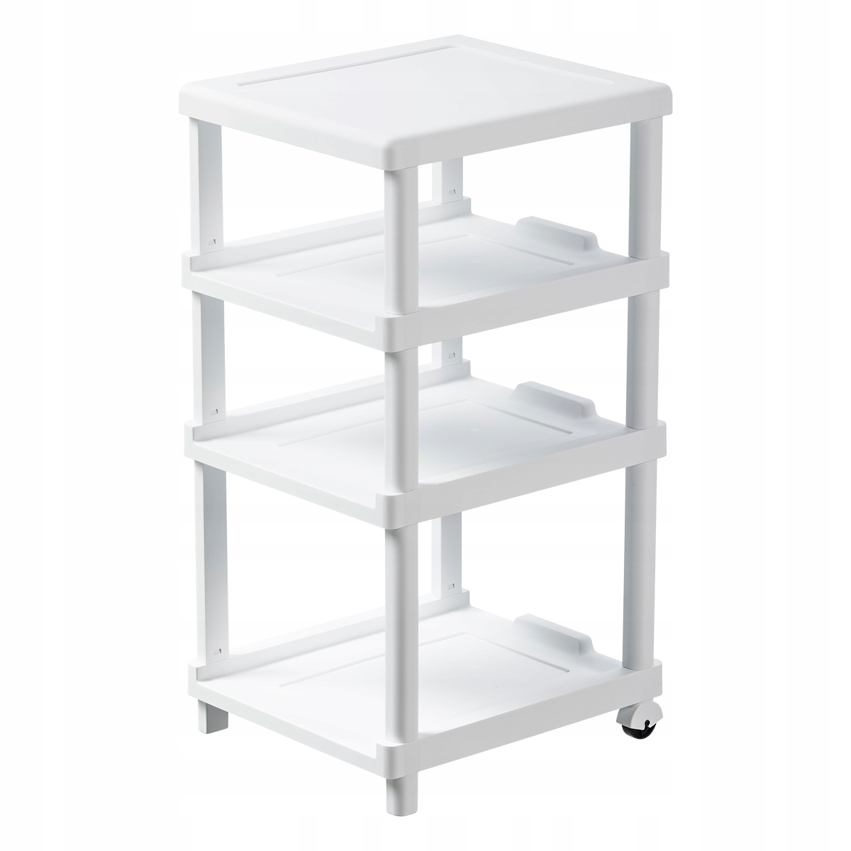 БЕЛАЯ Полка для ванной на колесах, 4 яруса