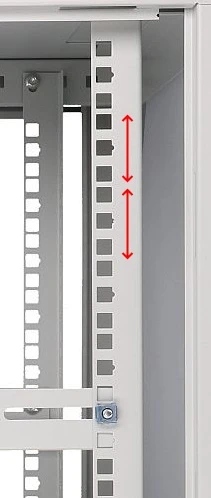 Вертикальные направляющие имеют соответствующую маркировку высоты, которая составляет 9U (от блока), а общая высота шкафа составляет 50,5 м. см .