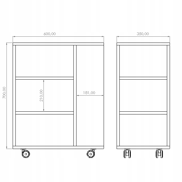 Он имеет 4 обрезиненных колеса, поэтому его можно легко перемещать. Боковые полки регулируются, поэтому вы можете свободно регулировать их высоту.