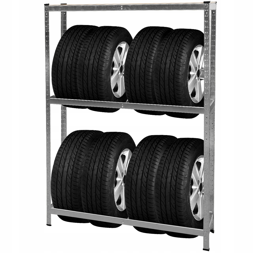 Стеллаж для шин Deuba изготовлен из полностью оцинкованной стали и оснащен полкой из МДФ, на которой можно хранить инструменты, колпаки или диски.
