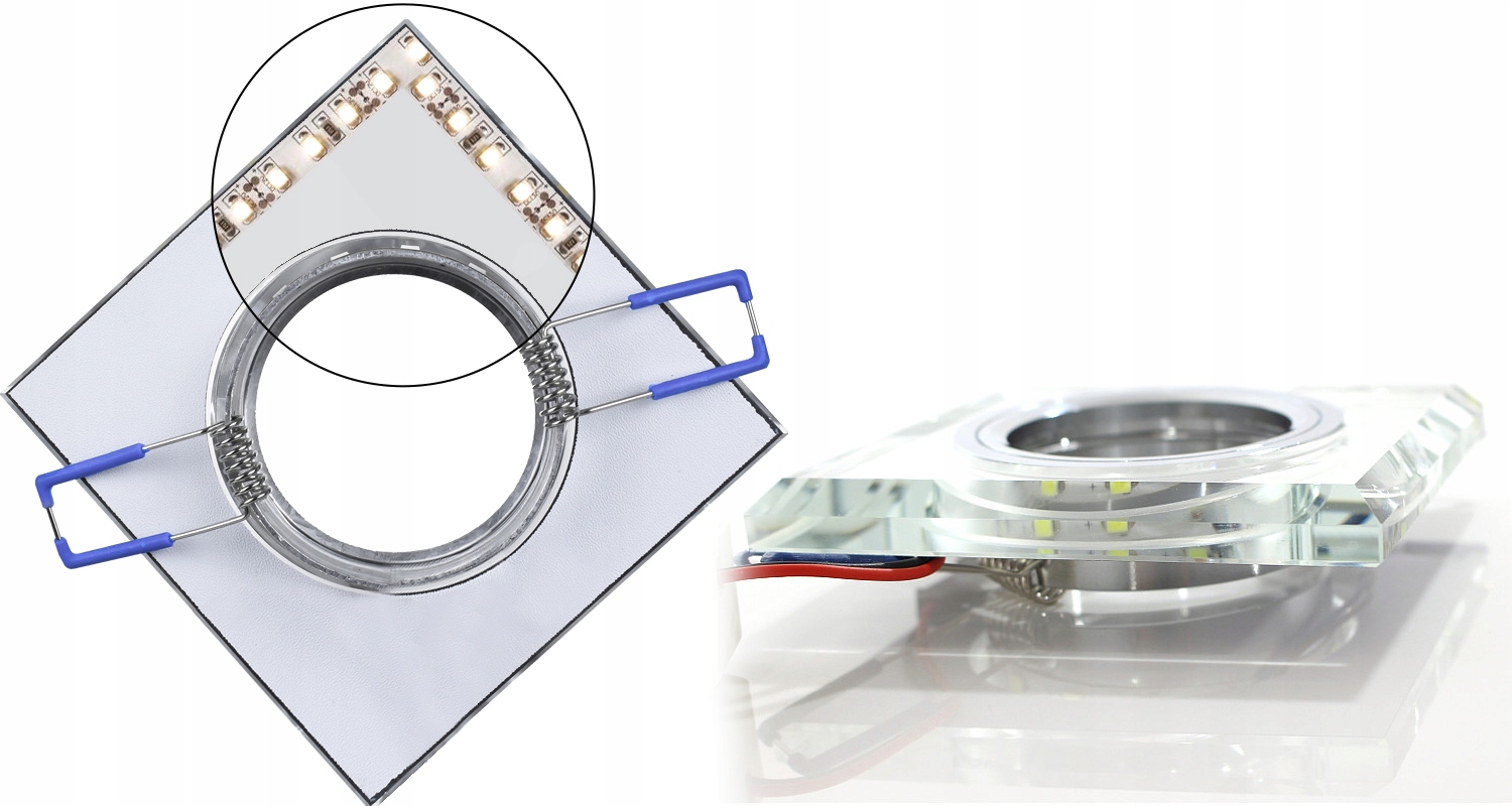 Дизайнерский патрон для галогенной лампы, дающий свет от двух источников. Основной поток света исходит от светодиодной лампы GU10 и дополнительного бокового акцентного освещения, обтекающего раму - прямо из светодиодной ленты. Все это выглядит эффектно и эффектно. хороший тон. Края кристаллов и Светодиодная лента идеально сочетаются друг с другом и создают потрясающий эффект освещения.