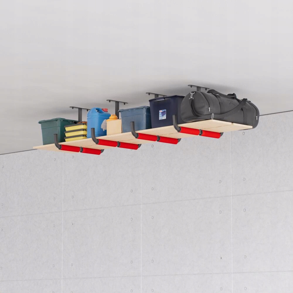 - Настенная или потолочная вешалка — двойная гаражная вешалка, которую можно использовать для хранения, например, лестниц, велосипедов, удочек