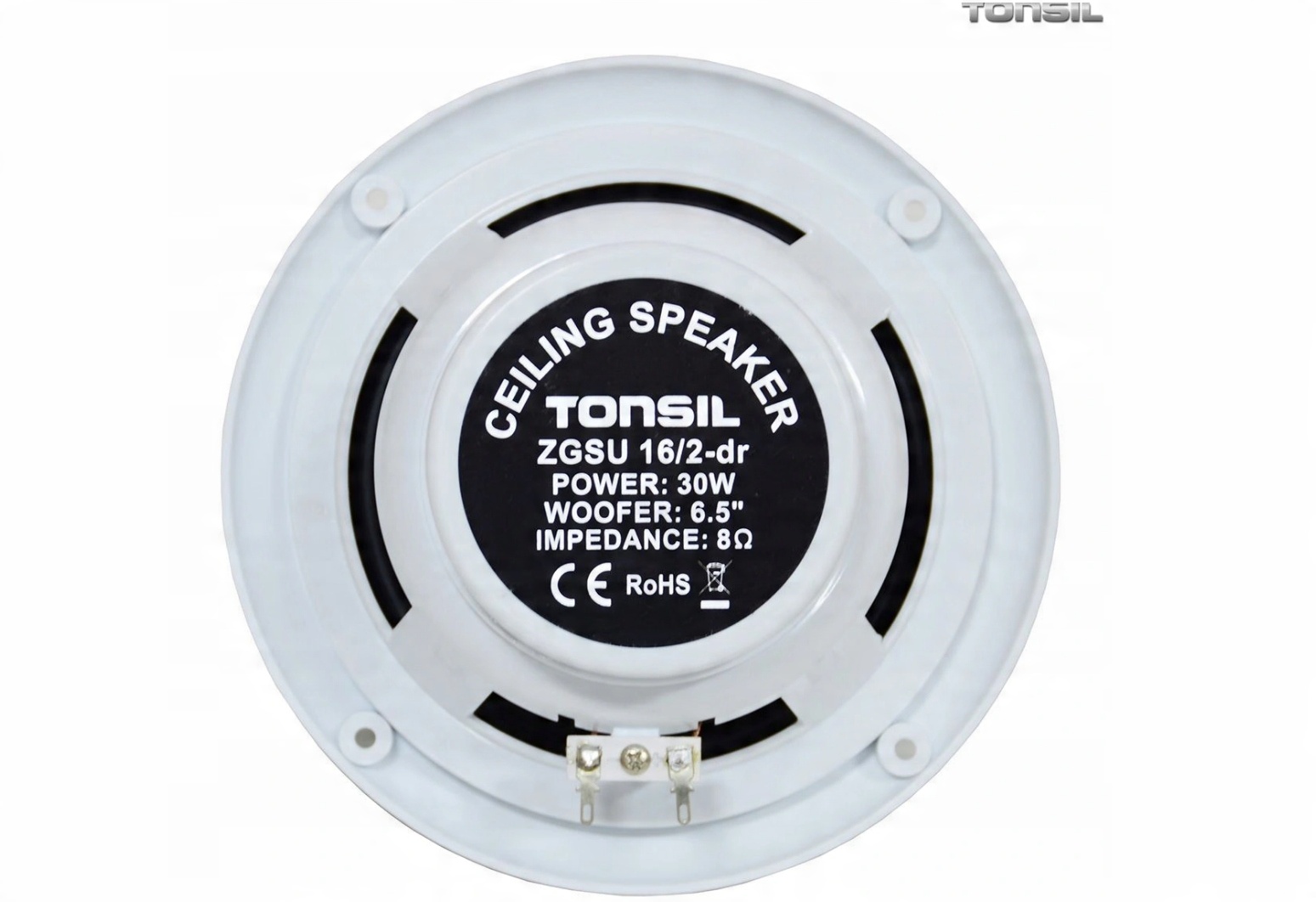 Высококачественный потолочный громкоговоритель с повышенной устойчивостью к влаге, предназначенный для установки в гипсокартон.
