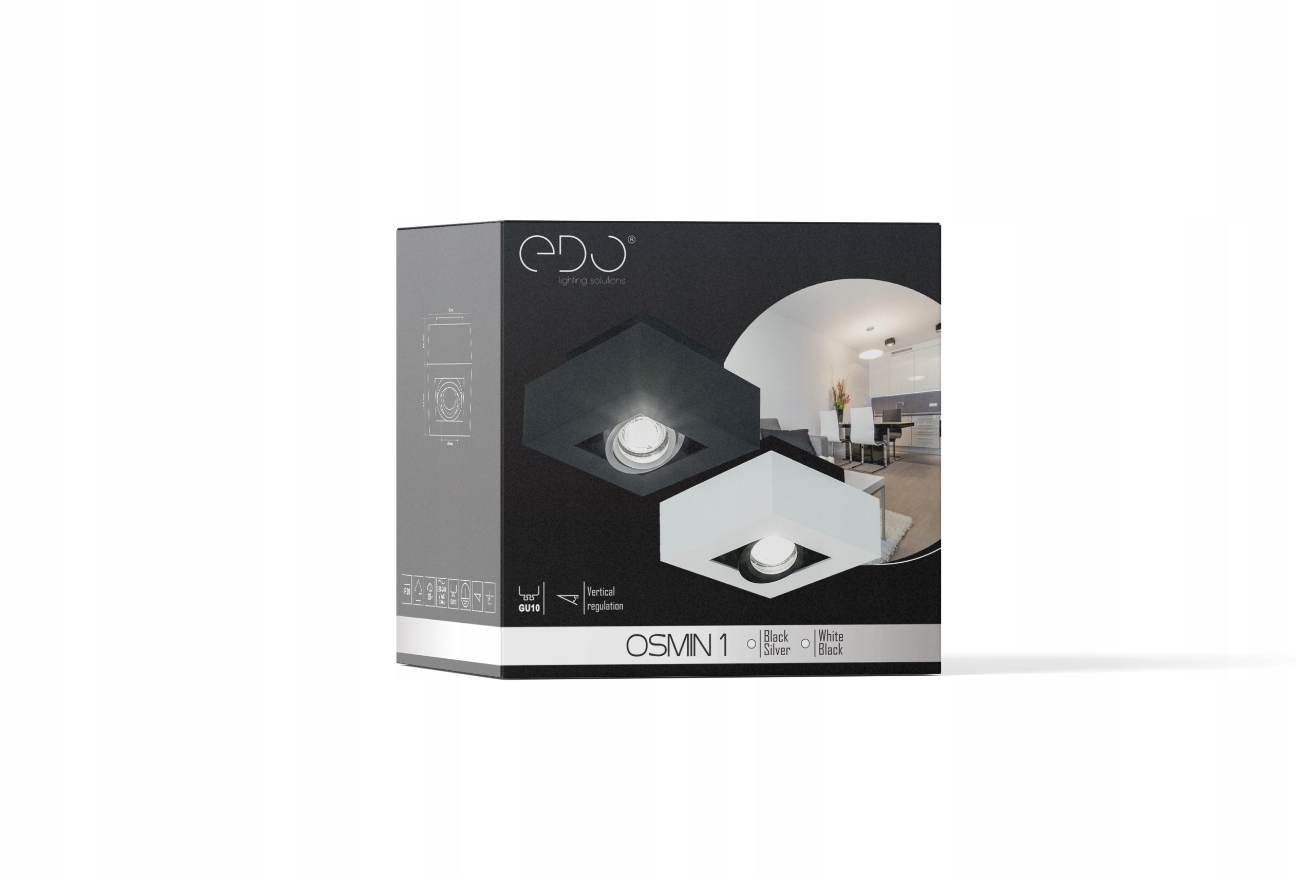OSMIN 1 Белый Черный IP20 квадратный потолочный точечный светильник, одинарный, белый матовый EDO777143 EDO