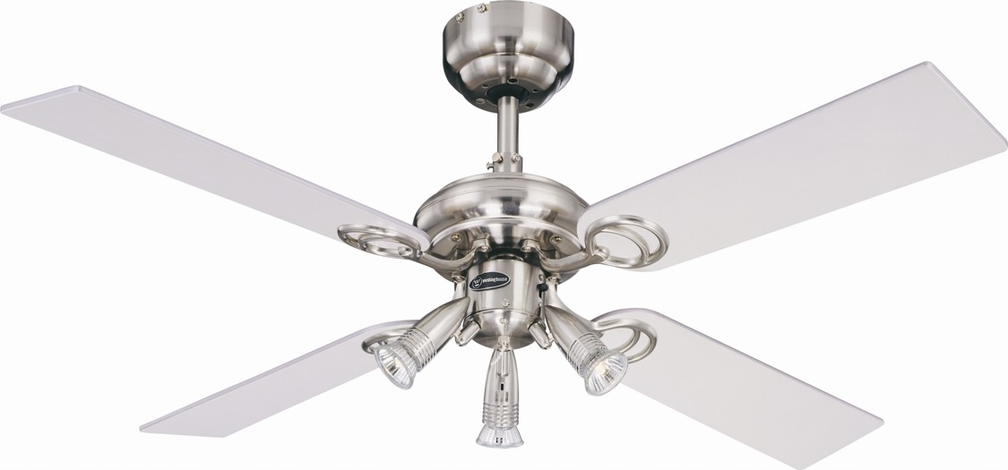 Жемчужный привлекает внимание: четыре двусторонних лезвия светлого клена и белого цвета, корпусные поверхности и три Прожекторы GU10 из нержавеющей стали придают неповторимый облик этой фирменной модели от Westinghouse.