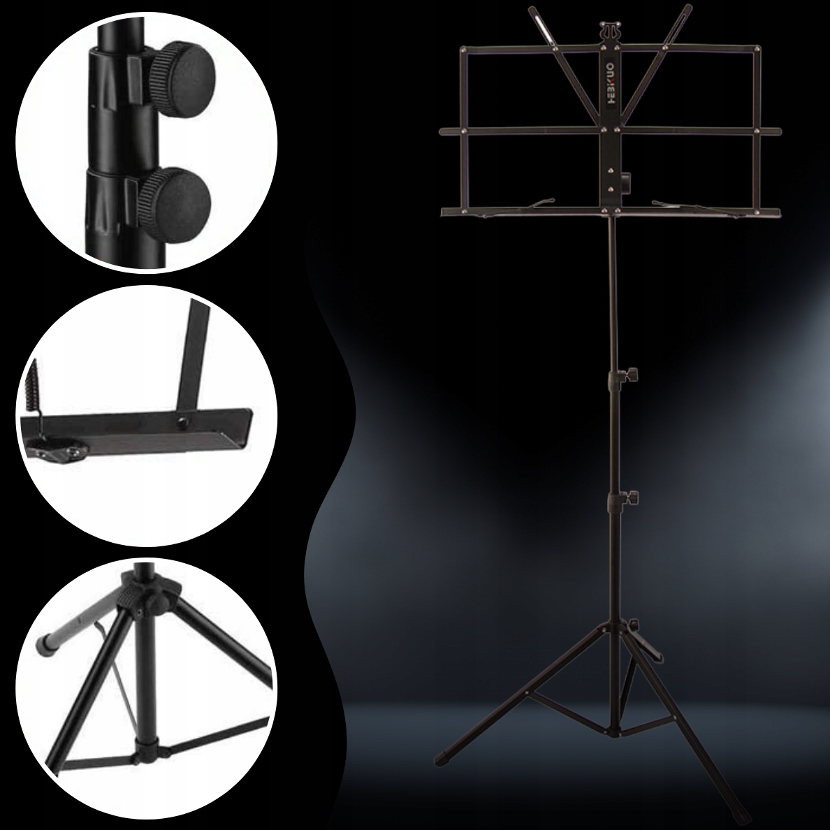 Профессиональная пюпитр на металлическом штативе с плавной регулировкой высоты и складным стальным столом — идеально подходит для начинающих и продвинутых музыкантов.