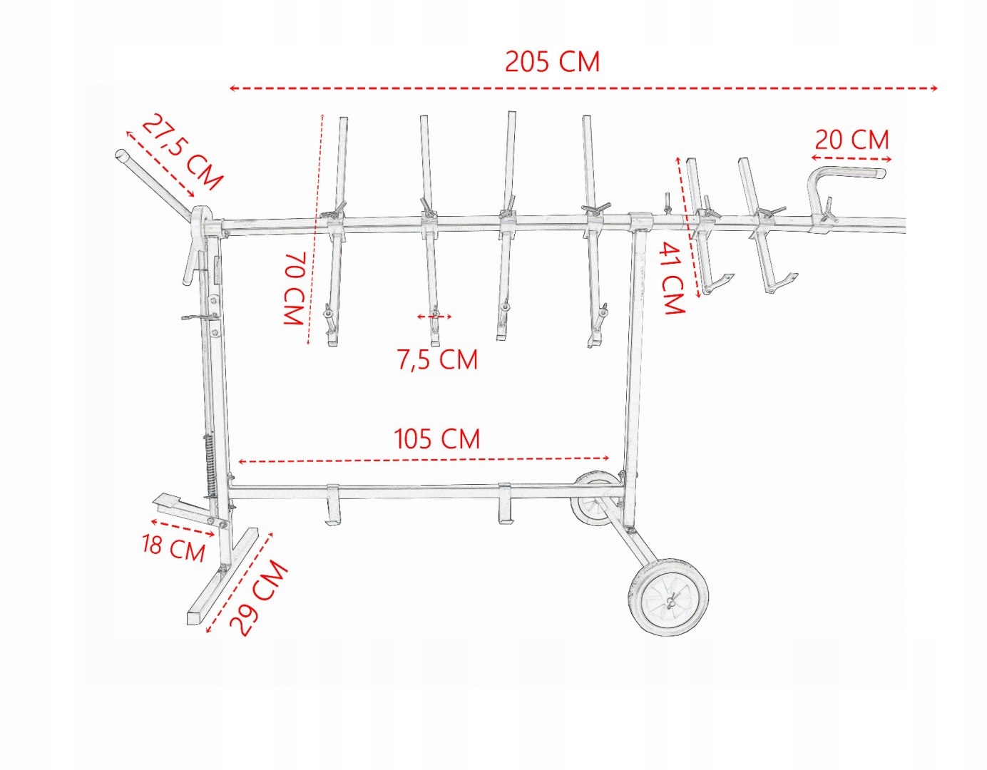 На ручках подставки имеются крючки, которые облегчают крепление предмета. Рядом с каждой трубкой есть регулировка, позволяющая настроить ее на работу.