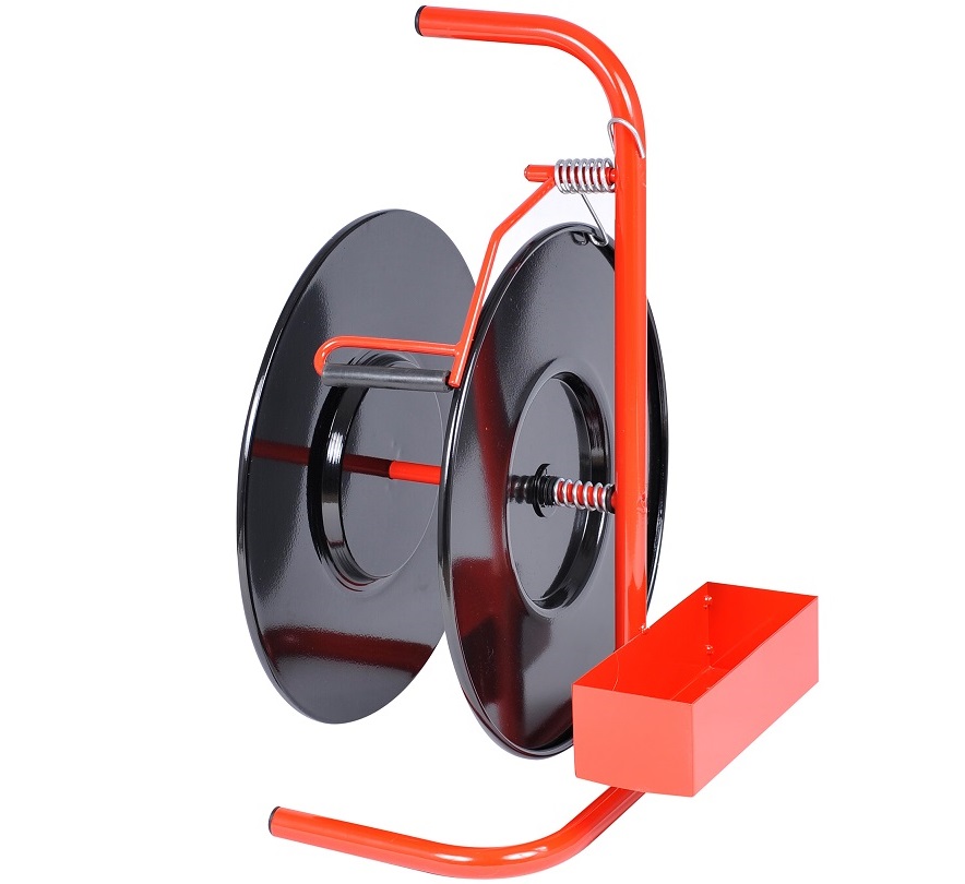 Универсальная стойка для размотки ленты. Преимущество подставки в том, что она прочная, изготовлена из металла и имеет полноценные пластины, удерживающие ленту. Они сохраняют свою форму даже после длительного использования. Лента устойчива, не скручивается и не запутывается. Размотчик предназначен для работы с лентой диаметром бобин 200 мм. Удобный ящик для инструментов позволяет хранить натяжитель и застежки.