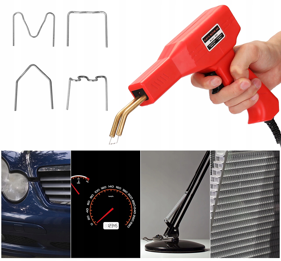 В комплект входит 200 скоб, с помощью которых устройство надолго соединит треснувшие пластиковые элементы a место подключения будет устойчиво к ударам и скручиванию.