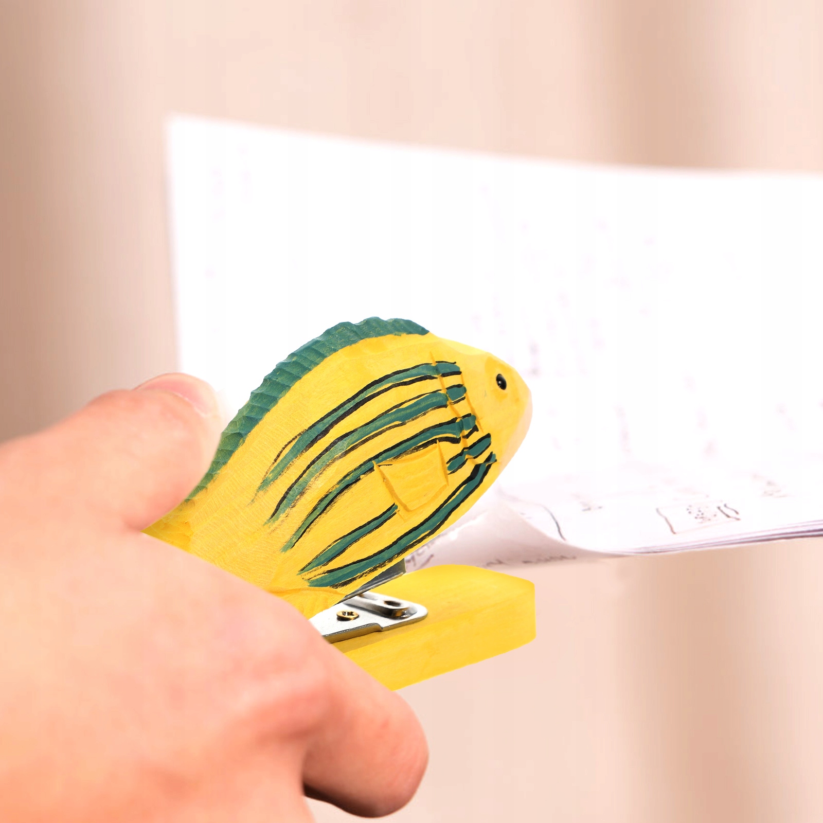 Этот предмет — не только степлер для животных, но и деревянная статуя животного, украшающая ваш стол.