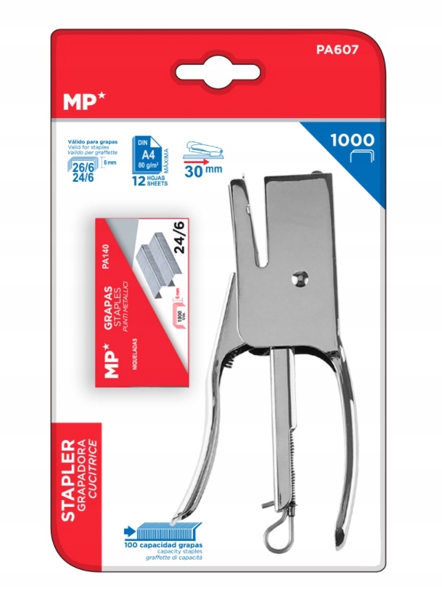 Он идеально лежит в руке, а благодаря специально разработанной конструкции делает сшивание чрезвычайно простым. Механизм и корпус изготовлены из металла, что обеспечивает длительный срок службы. Адаптирован к скобам 24/26. Глубина вставки листов 30 мм. Количество сшиваемых листов до 12.