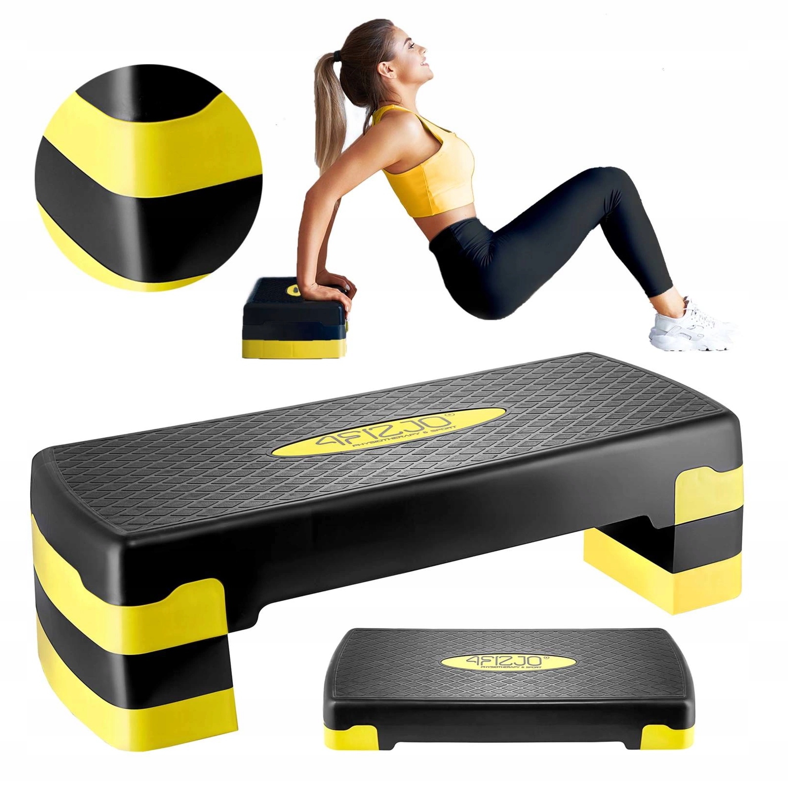Степ — многофункциональное оборудование, которое будет работать не только во время групповых занятий фитнесом, но и может использоваться для домашних тренировок. Широкий спектр приложений дает возможность постоянно разнообразить выполняемые упражнения, адаптируя их к индивидуальным потребностям и возможностям. Этому также способствует регулировка высоты, которая позволяет менять интенсивность и уровень сложности, что приводит к эффективной коррекции фигуры и выносливости. Ступенька изготовлена из прочного материала, устойчивого к давлению, что обеспечивает многократное использование даже при высокой динамике движения. В то же время он чрезвычайно безопасен благодаря нескользящей поверхности и высокой устойчивости. Это отличное оборудование для фитнес-клубов, а также позволяет проводить индивидуальные тренировки в удобном месте. Он позволит вам выполнять аэробные тренировки, даст дополнительный стимул для силовых упражнений, а также отлично разогреет ваше тело для любых видов упражнений. Благодаря этому мы улучшим свою физическую форму и выносливость, повысим координацию движений и улучшим фигуру.