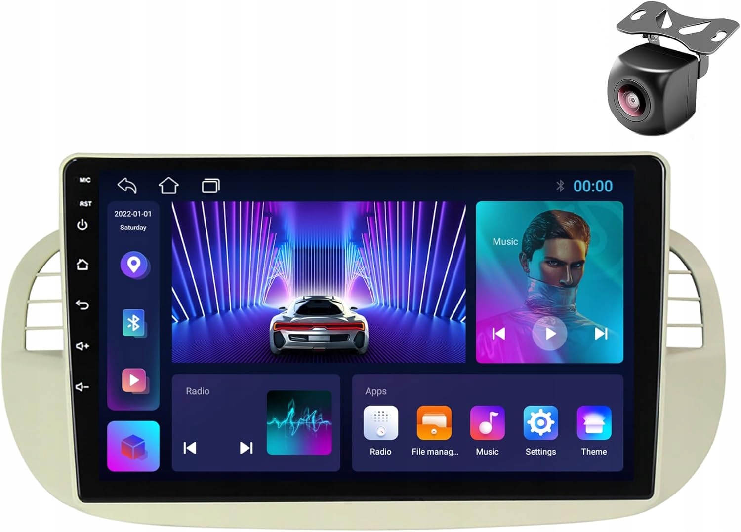 Android 12 для Fiat 500 2007 2008 2008 2008 2010 2013 2013 2013 2014 Car Stereo Radio с FM SWC Camera встроенной автомобильной игрой Android Auto Navigation GPS GPS Обновление сенсорного экрана (M150S 4Core 2+32G, B)