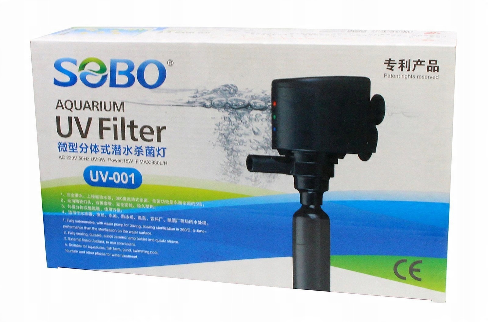 Стерилизаторы SOBO UV-C серии UV-001/002/003 торговой марки SOBO предназначены для полного погружения и оснащены роторным насосом, обеспечивающим соответствующий поток и высочайшую эффективность стерилизации. воды, текущей через внутреннюю часть лампы. УФ-лампы – незаменимый элемент оборудования каждого аквариумиста и владельца пруда. Он действует как уничтожитель водорослей в воде, борется с бактериями и паразитами, опасными для рыб и сельскохозяйственных растений, а также устраняет причины большинства заболеваний. Они являются наиболее эффективным средством от так называемого «зеленая вода». Они обеспечивают эффект кристально чистой воды. Стерилизация УФ-лучами не меняет химический состав воды. Это безопасный, надежный и быстрый метод обеззараживания воды без применения температуры и химикатов. УФ-лампы являются отличным решением в борьбе с водорослями, а также предотвращают их повторное размножение.