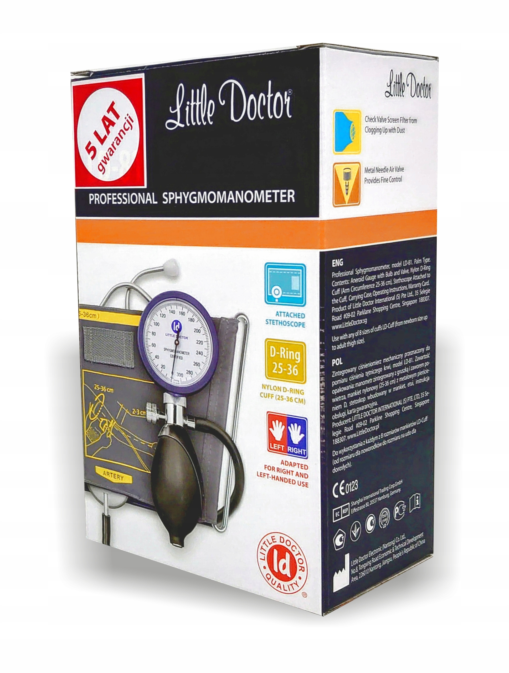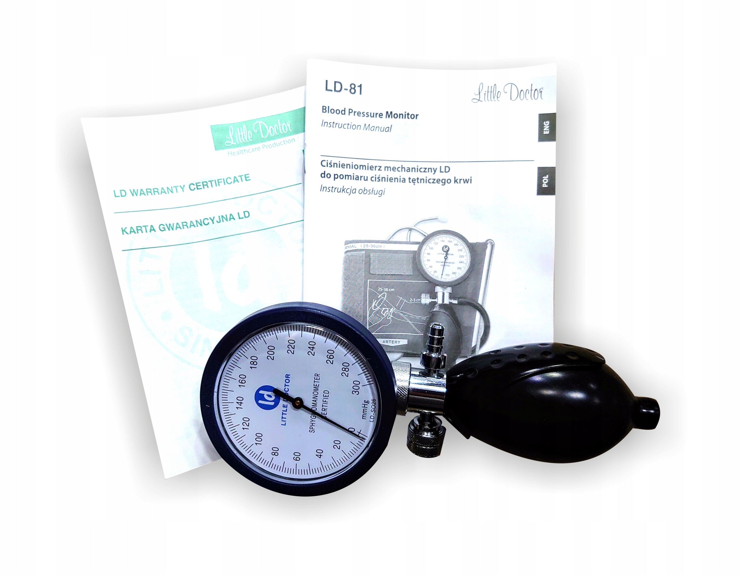 Современный циферблатный тонометр LD-81 — прибор высшего качества от компании Little Doctor. Медицинский тонометр для удобного, быстрого и точного измерения артериального давления на руке. Этот тонометр оснащен вращающимися часами, что делает его идеальным для использования правшами и левшами. Высокое качество прибора проверено и соответствует всем требованиям Европейской директивы по медицинскому оборудованию, поэтому его можно использовать в кабинетах врачей. Большой диаметр циферблата (60 мм) гарантирует высокую прозрачность и значительно облегчает считывание показаний даже пожилым людям. Благодаря интеграции манометра с помпой и стетоскопа с манжетой можно самостоятельно измерять артериальное давление одной рукой.