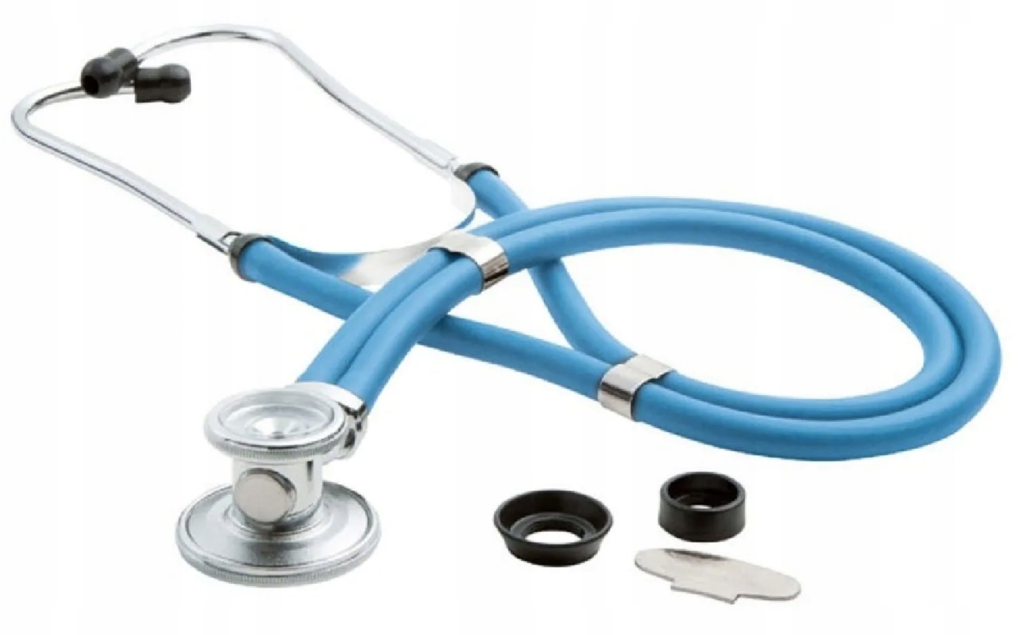 Стетоскоп имеет сменные диафрагмы и сменные воронки трех размеров. В набор входят мягкие и твердые оливки.