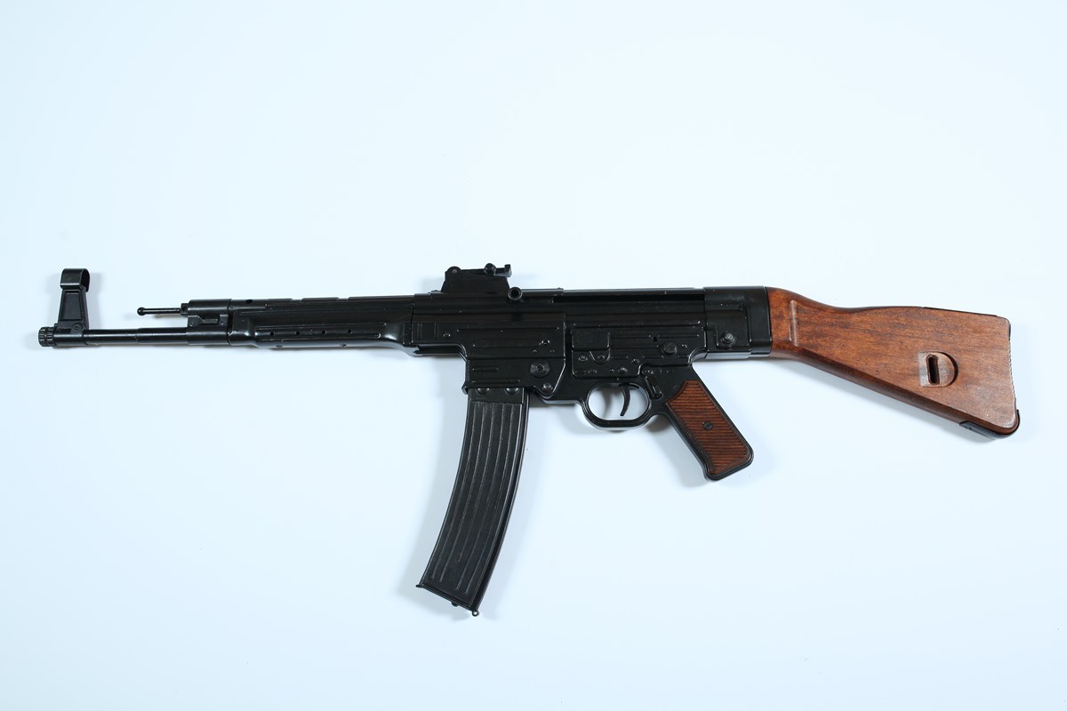 Замечательная копия немецкой штурмовой винтовки STG44 Sturmgewer. Изготовлен из сплава цинка и алюминия в сочетании с превосходной древесиной. Реплика имеет съемный магазин с крышкой, можно вернуть так называемый холостой выстрел.