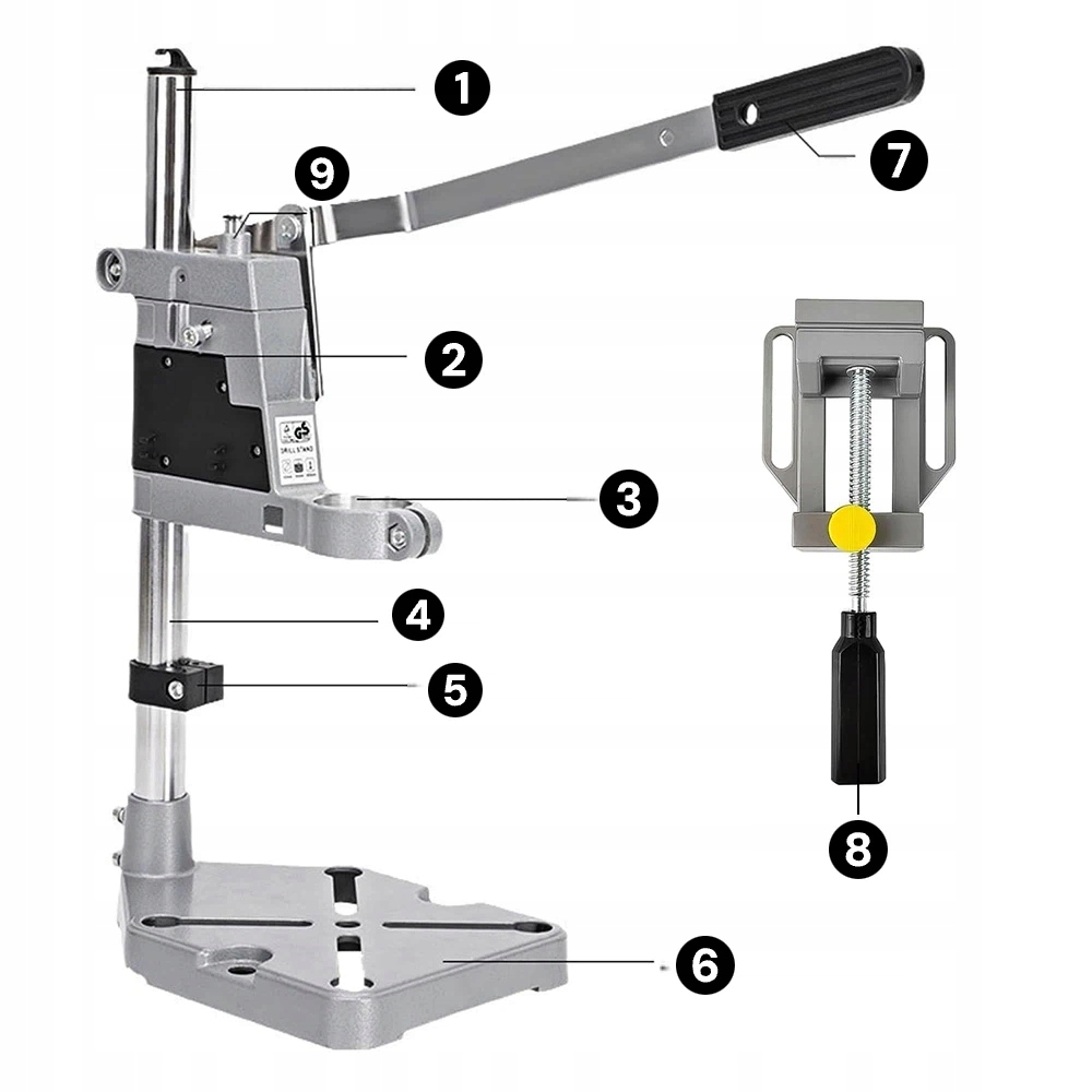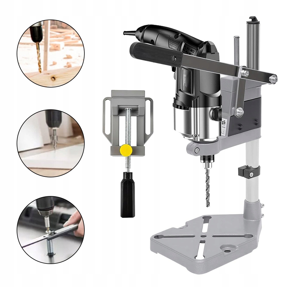 ☀️☀️Превратите обычную ручную дрель в стабильный и точный инструмент! Эта прочная алюминиевая подставка (штатив) для настольной дрели — комплексное решение для всех, кто ценит точность. Набор позволяет крепить большинство электродрелей с диаметром патрона от 38 до 43 мм, превращая их в миниатюрную настольную дрель. Благодаря максимальной глубине сверления 60 мм и входящим в комплект плоскогубцам (станочным тискам) с диапазоном зажима 0-70 мм можно надежно зажать как инструмент, так и заготовку. Прочное, нескользящее основание с алюминиевой колонной гарантирует отсутствие вибраций и неконтролируемых движений во время работы.