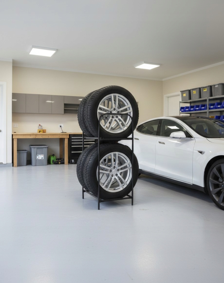 Идеально подходит для гаража, подвала, мастерской или шиномонтажа. Подставка позволяет правильно хранить шины.