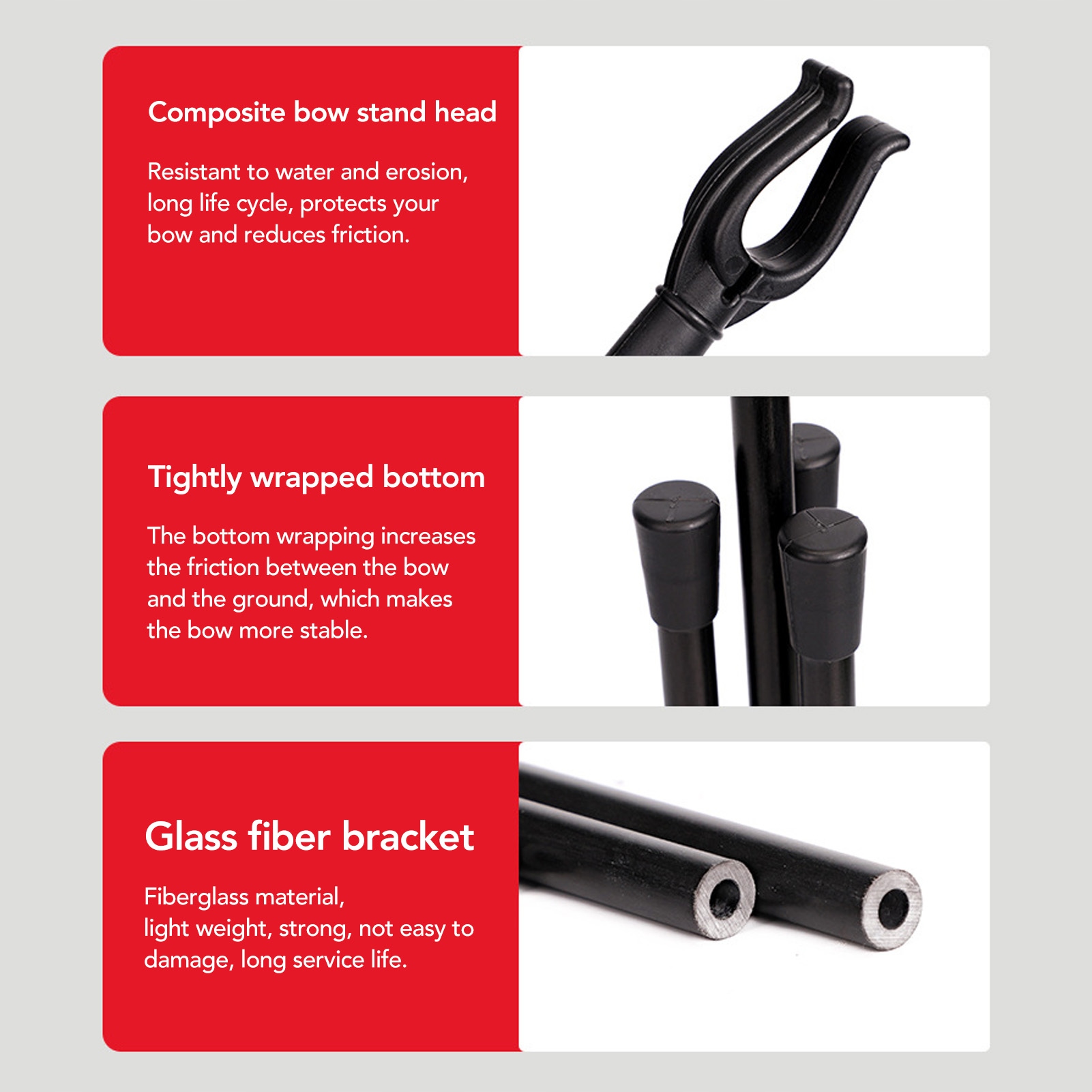 Характеристика: 1. Высококачественный материал из стекловолокна: эта подставка для лука для стрельбы из лука изготовлена из прочного стекловолокна, легкая, что обеспечивает долгосрочное использование и надежность.