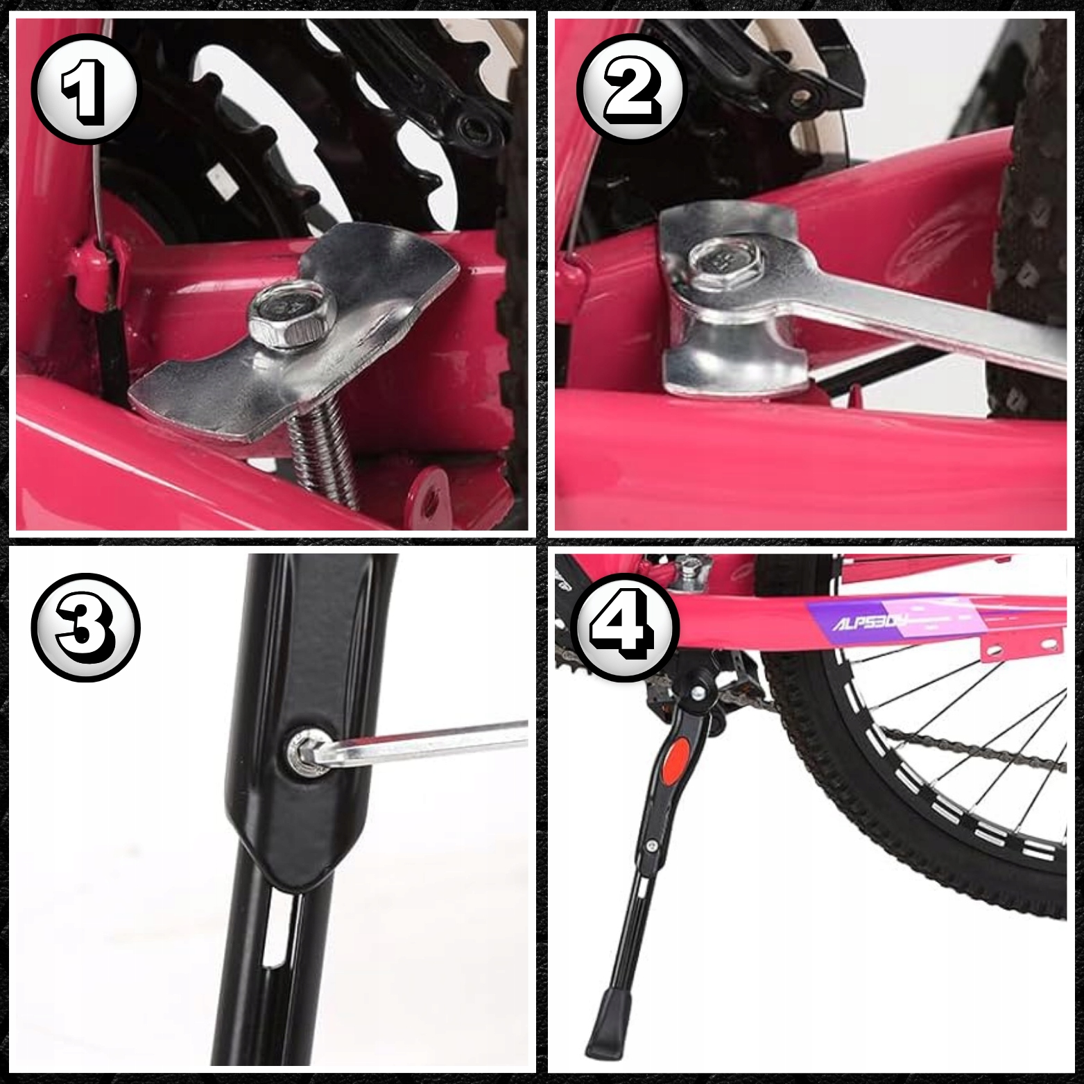 Изделие крепится на заднюю трубу рамы с помощью шестигранных ключей (не входят в комплект), поддержка также подойдет для велосипедов с дисковой тормозной системой.
