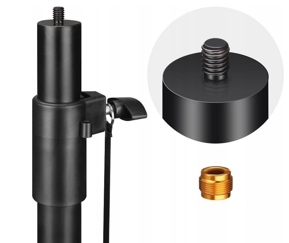 Штатив также отлично подходит в качестве подставки для сценических динамиков. Трудно найти другое подобное решение на рынке. Соответствующий диаметр трубы позволяет осуществить непосредственную установку на держатель колонки или, если его нет, можно использовать монтажную полку, входящую в комплект. Удивительно, правда? Грузоподъемность 40 кг означает стабильность по беспрецедентной цене.