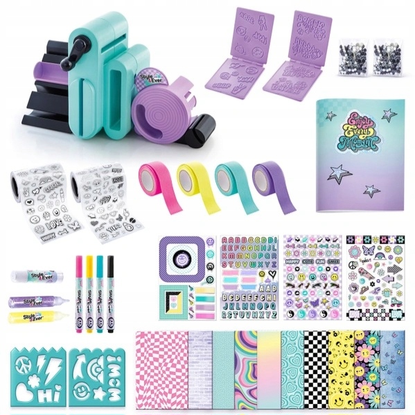 Этот творческий набор включает в себя все, что вам нужно для разработки и украшения ноутбуков, фотографий, карт или букв. Благодаря более 150 дополнениям - как блестящие стразы, шаблоны, наклейки, маркеры, узорчатые бумаги или марки - вы можете создать уникальные коллажи и украшения.