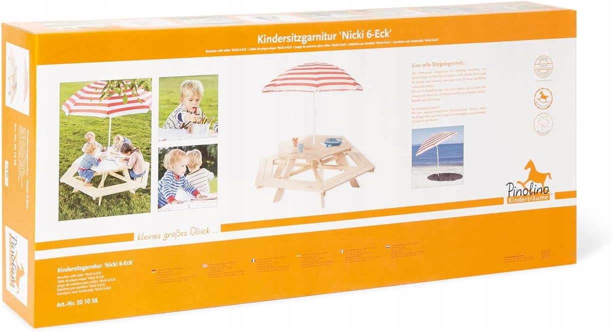 Оплачивая «Стіл дитячий Pinolino Nicki з лавкою 6-кутовий ОПИС», вы можете быть уверены, что данный товар из каталога «Садовая мебель» будет доставлен из Польши и проверен на целостность. В цене товара, указанной на сайте, учтена доставка из Польши. Внимание!!! Товары для Евросоюза, согласно законодательству стран Евросоюза, могут отличаться упаковкой или наполнением.