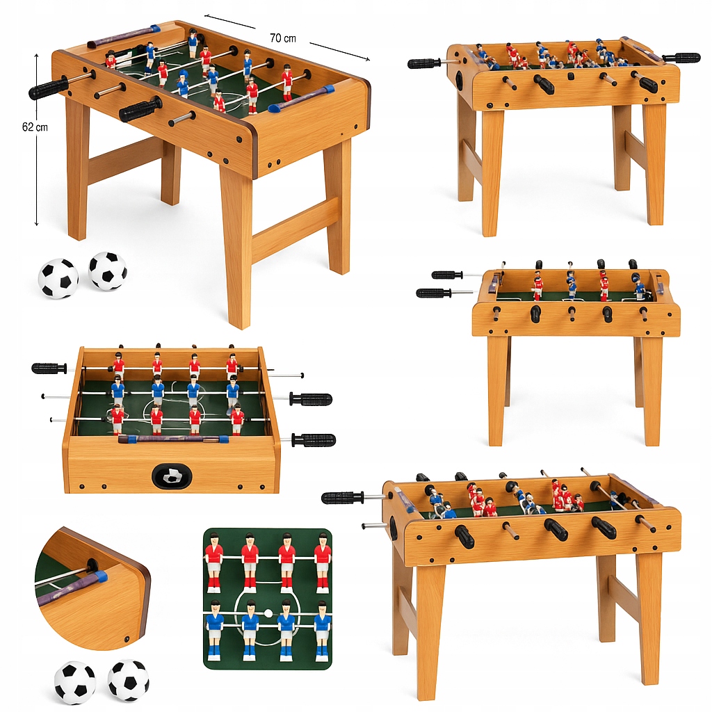 ДЕРЕВЯННЫЙ ФУТБОЛЬНЫЙ СТОЛ НА 18 ИГРОКОВ, СЧЕТЧИК ВСТАВОК, 2 МЯЧА, 70x37x62