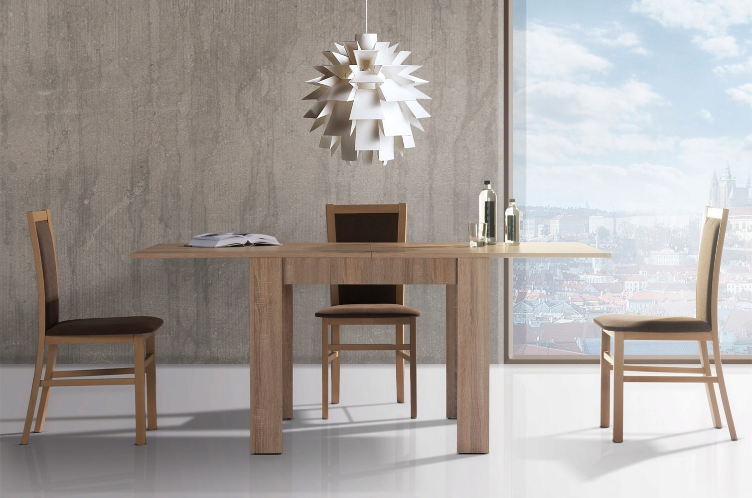 Идеальное решение для небольшого, интимного обеденного пространства. Практический маленький стол после развертывания играет роль функциональной мебели.