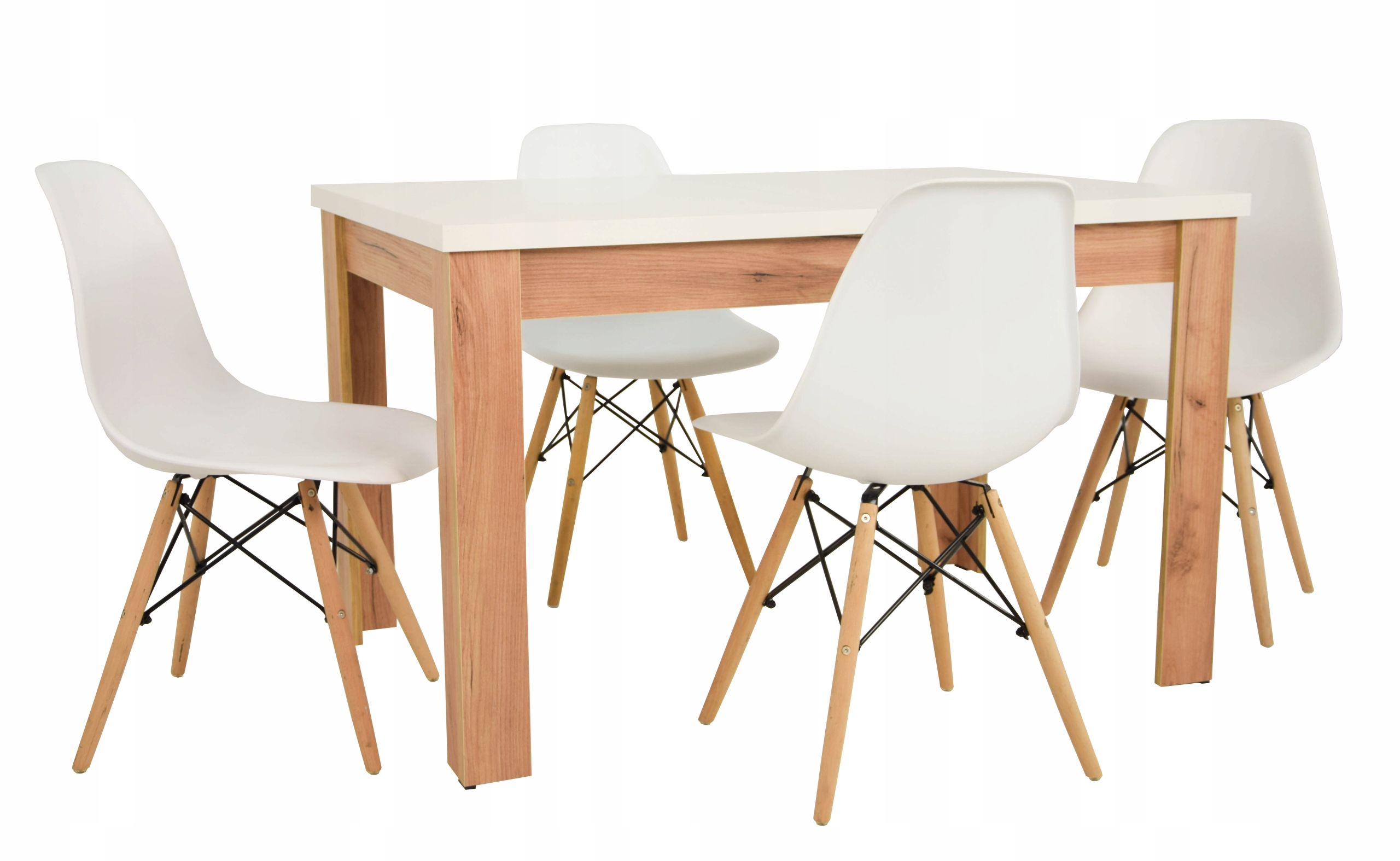 Дубовый раздвижной стол 80х120/160, 4 белых стула