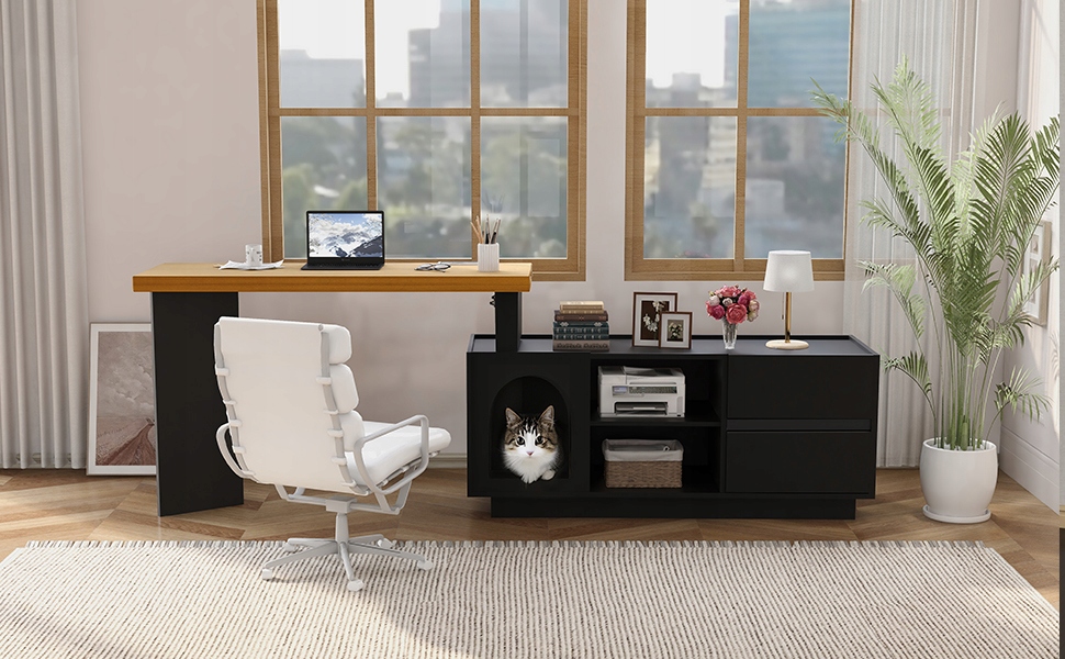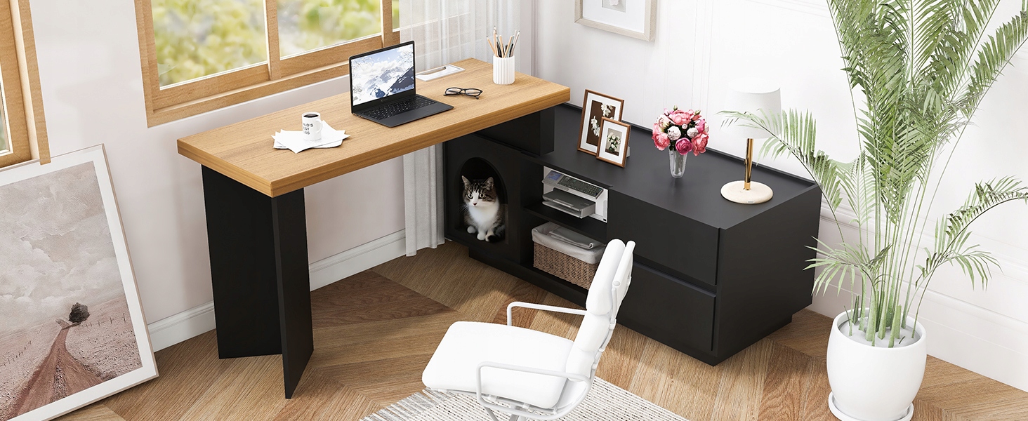 Описание товара Следуйте своему сердцу и составьте компанию своему питомцу. Этот современный Г-образный стол — больше, чем просто рабочее место. Он создан для любителей животных, которые не хотят отказываться от тесного контакта со своей кошкой или щенком, работая дома. Встроенная большая зона для домашних животных внизу дает вашему питомцу удобное и уединенное место для отдыха, а размеры проема примерно 37,5 x 47 x 43 см подходят для кошек и маленьких собак. Больше не нужно «ползать на коленях» — у вашего пушистого друга есть свое место рядом с вами.