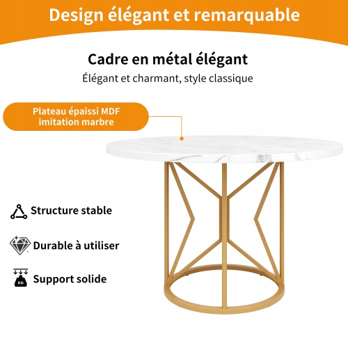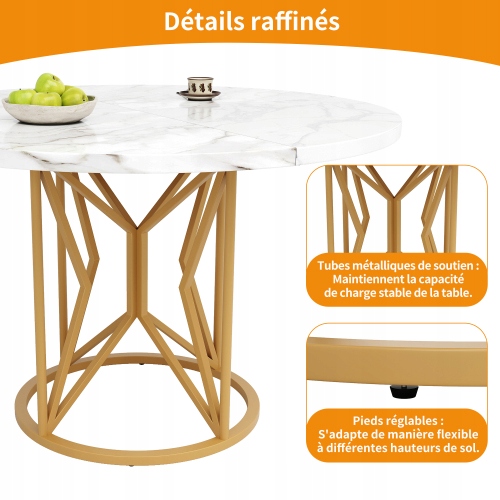 Материалы высочайшего качества: Столешница изготовлена из утолщенного МДФ с мраморной отделкой, что не только эстетично, но и обеспечивает прочную и стабильную конструкцию. Металлические опорные трубки обеспечивают устойчивую опорную поверхность, что делает стол подходящим для повседневного использования и различных случаев.