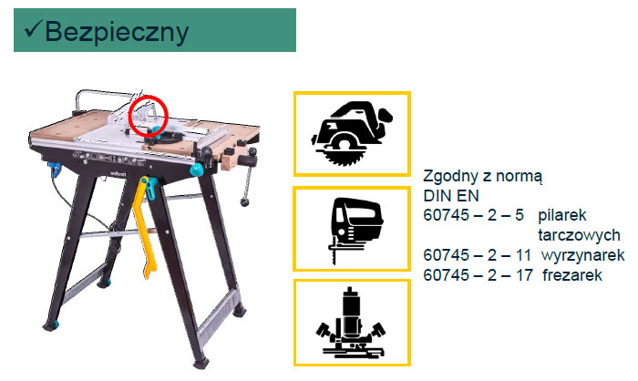 - ручные дисковые пилы с раскалывающим клином, макс. глубина пропила до 70 мм, диаметр циркулярной пилы до 200 мм и размеры плиты станка указаны на пиктограмме ниже. Чтобы использовать ручные пилы без раскалывающего клина, необходимо приобрести раскалывающий клин, доступный как отдельная принадлежность, арт. 6903000 (до 160 мм) или арт. 6904000 (160 - 200 мм) - наше предложение аксессуаров для стола находится внизу страницы, под описанием стола.