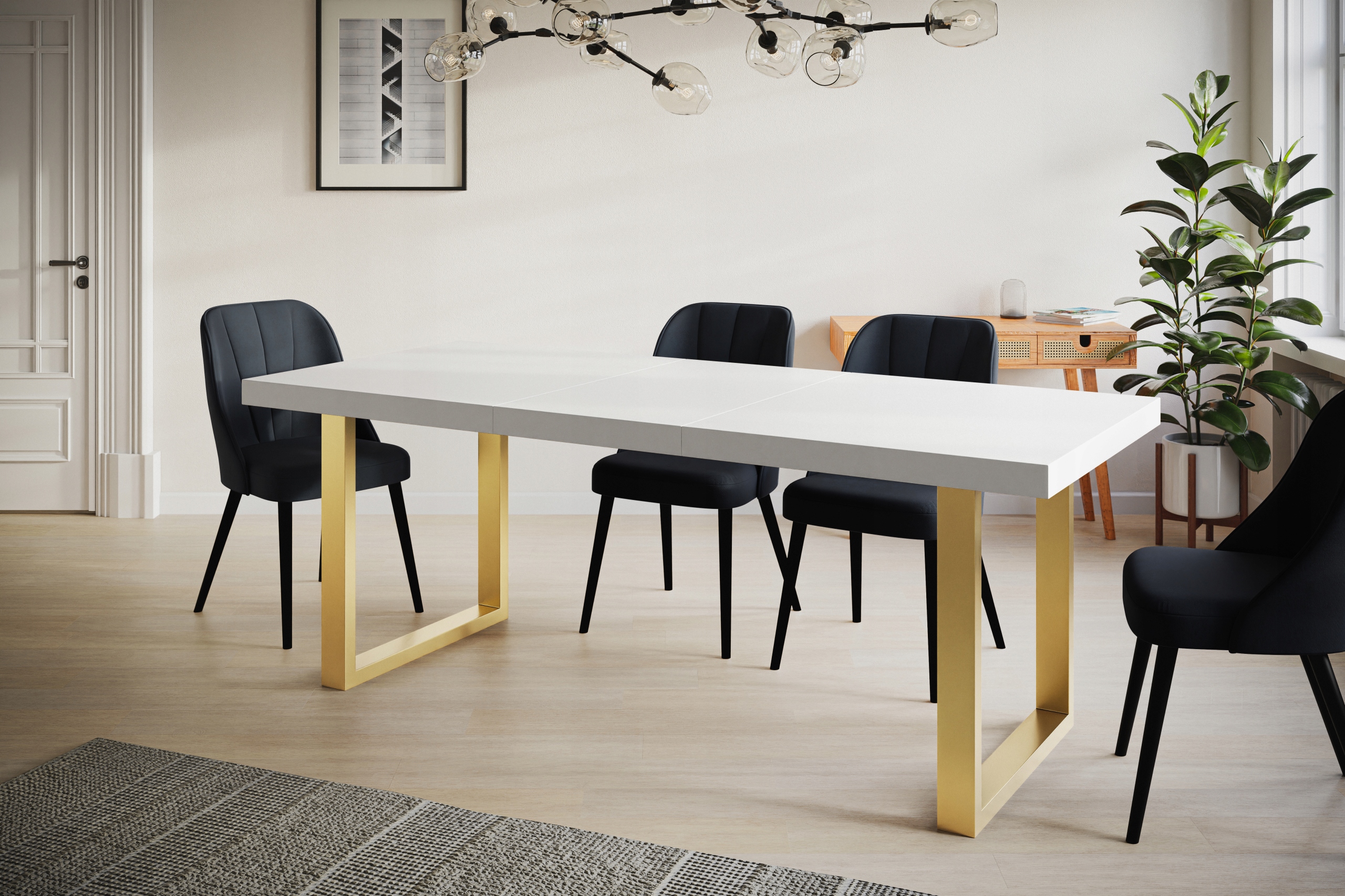 - Расстояние между ножками: 195 (стол с 2 вставками)