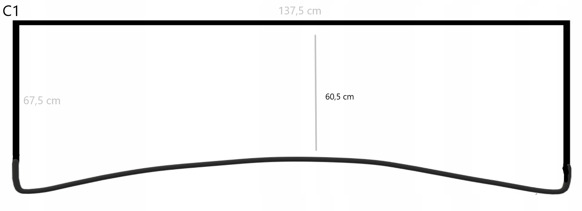 На аукционе выставлена столешница в форме С1 – с углублением и закругленными углами