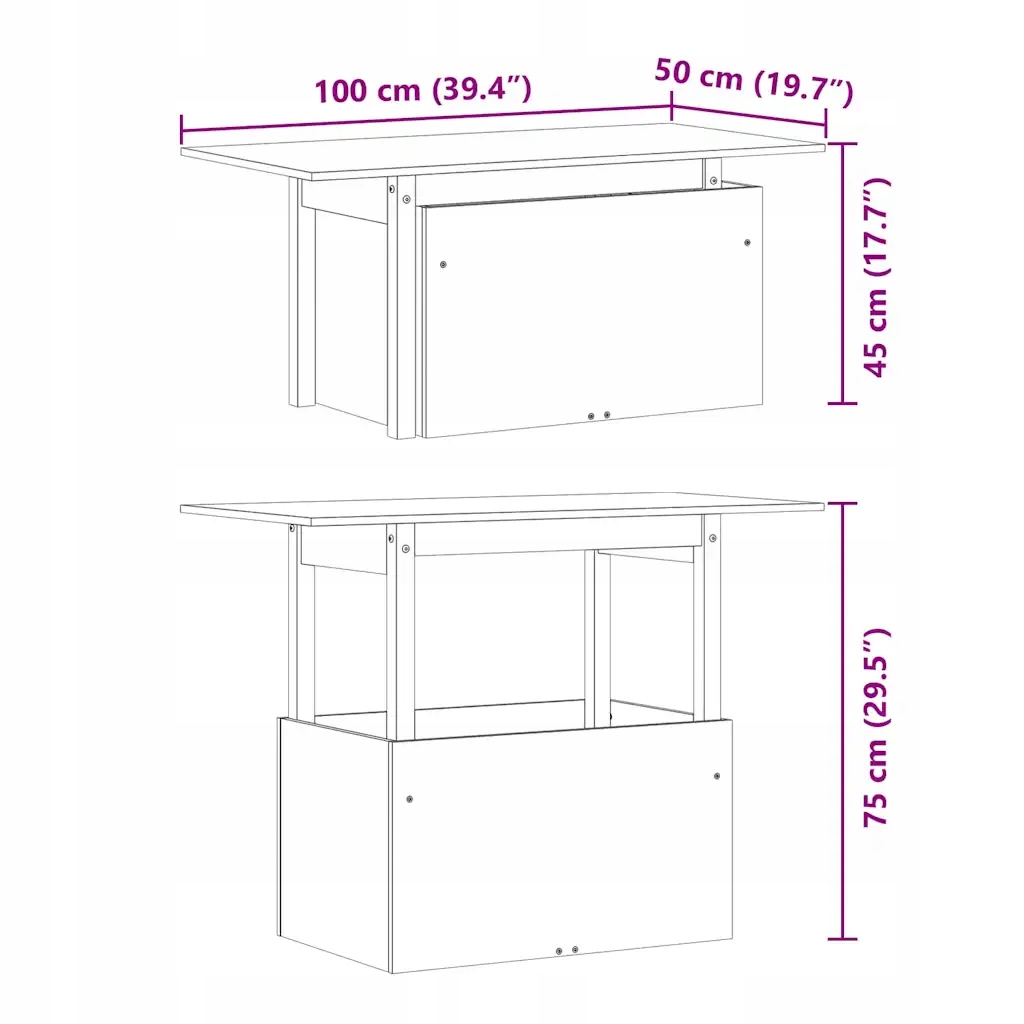 • Регулируемая верхняя часть: верхнюю часть можно поднять, чтобы поднять мебель, что позволяет превратить журнальный столик в обеденный. Он идеально подойдет для приема гостей или приема пищи на свежем воздухе.
