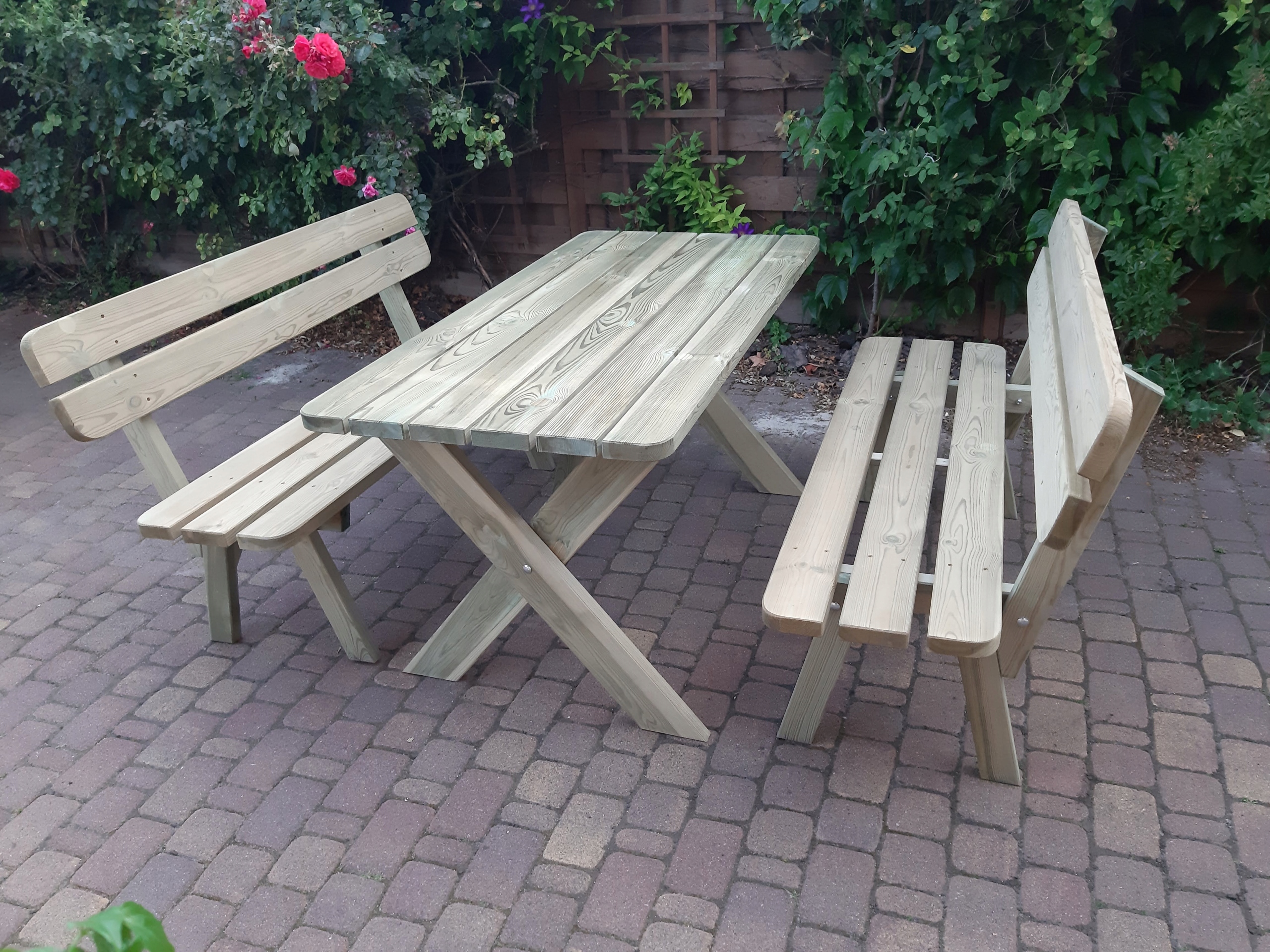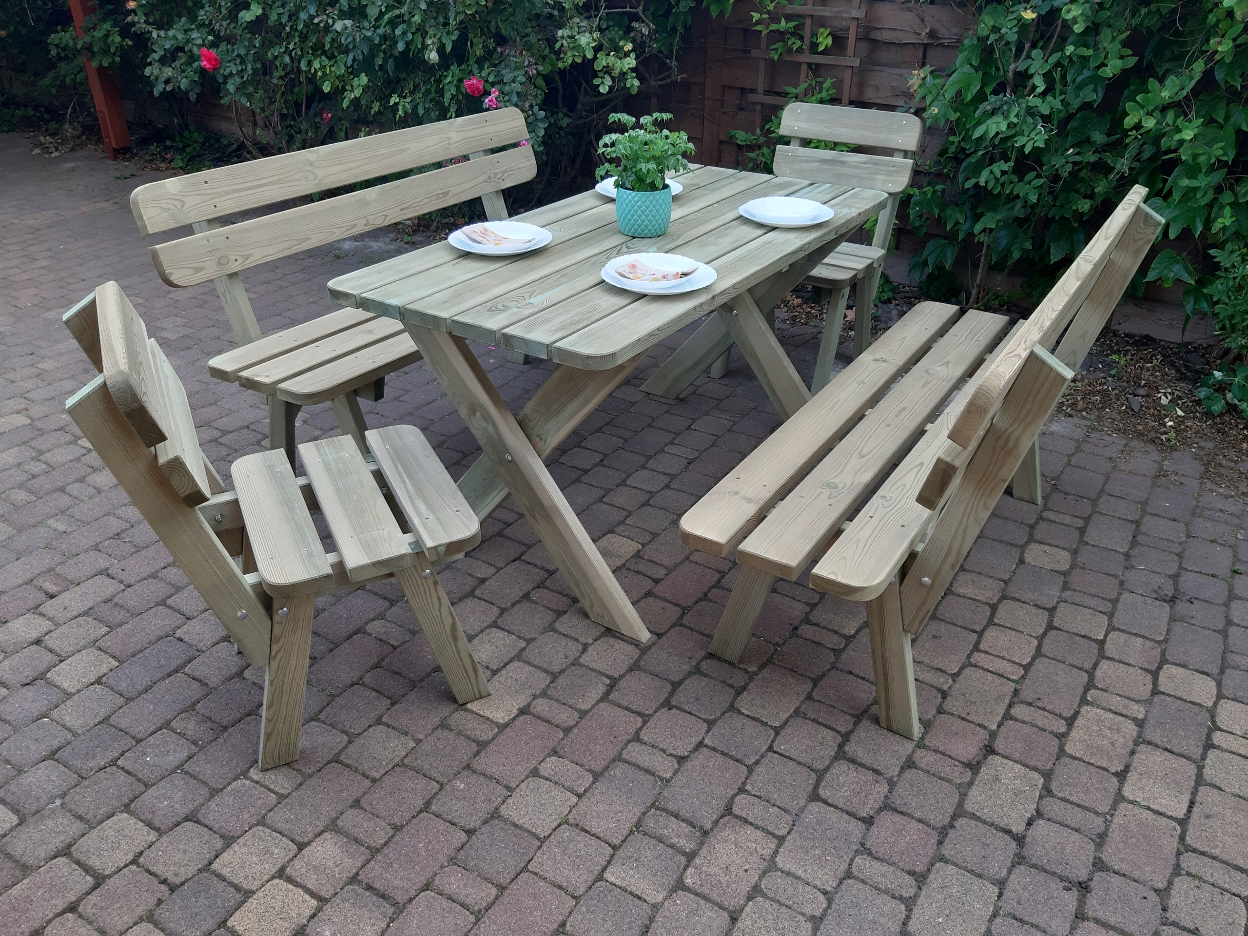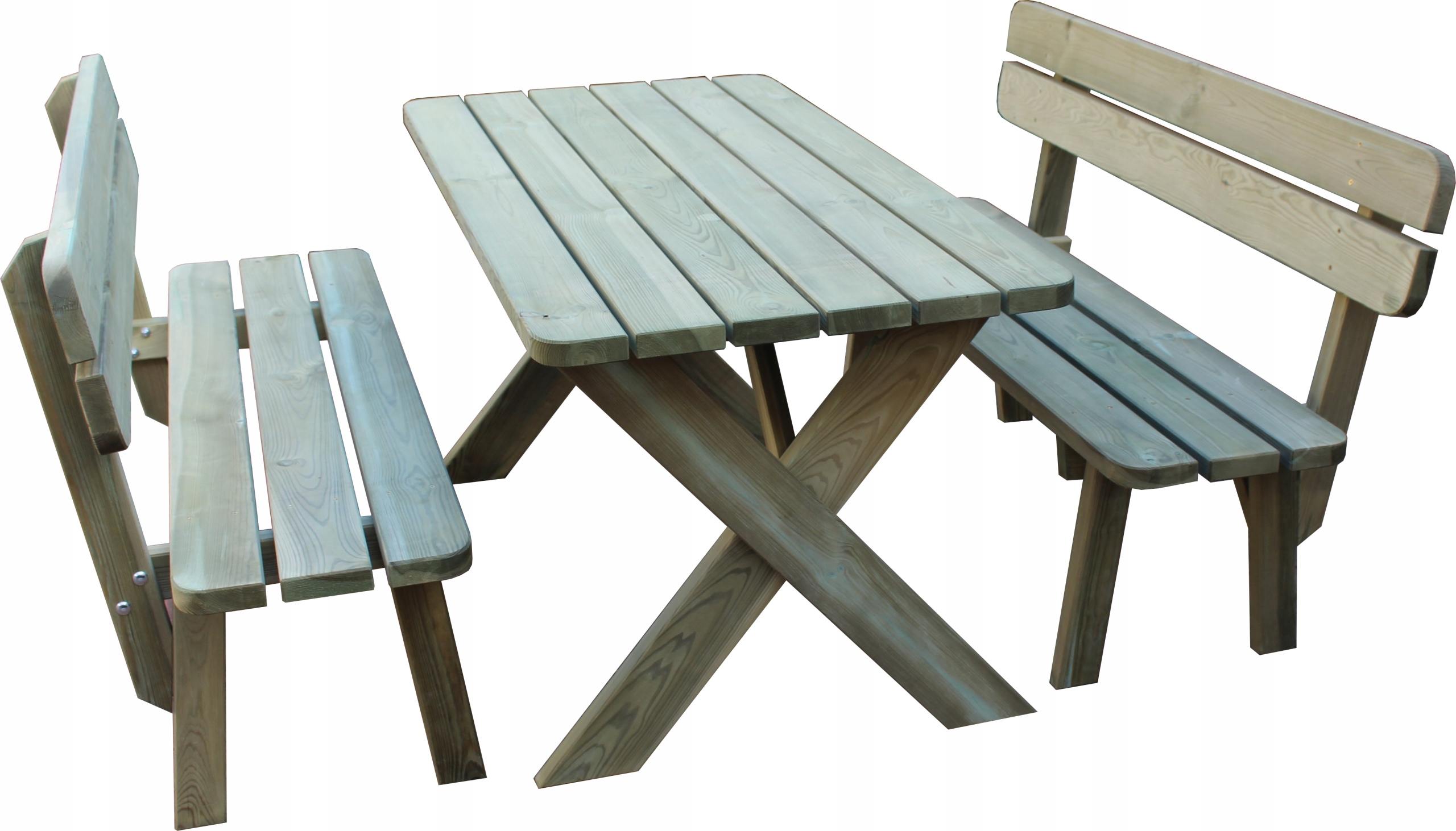 Новинка – не требует дополнительной покраски для защиты древесины. В зависимости от степени воздействия на древесину вредных внешних условий мебель рекомендуется через 1-2 года повторно пропитать любым средством для пропитки древесины на открытом воздухе. Чтобы теперь придать ему другой цвет, его можно дополнительно покрасить самостоятельно. Любой более темный цвет после пропитки покроет светло-зеленый оттенок.