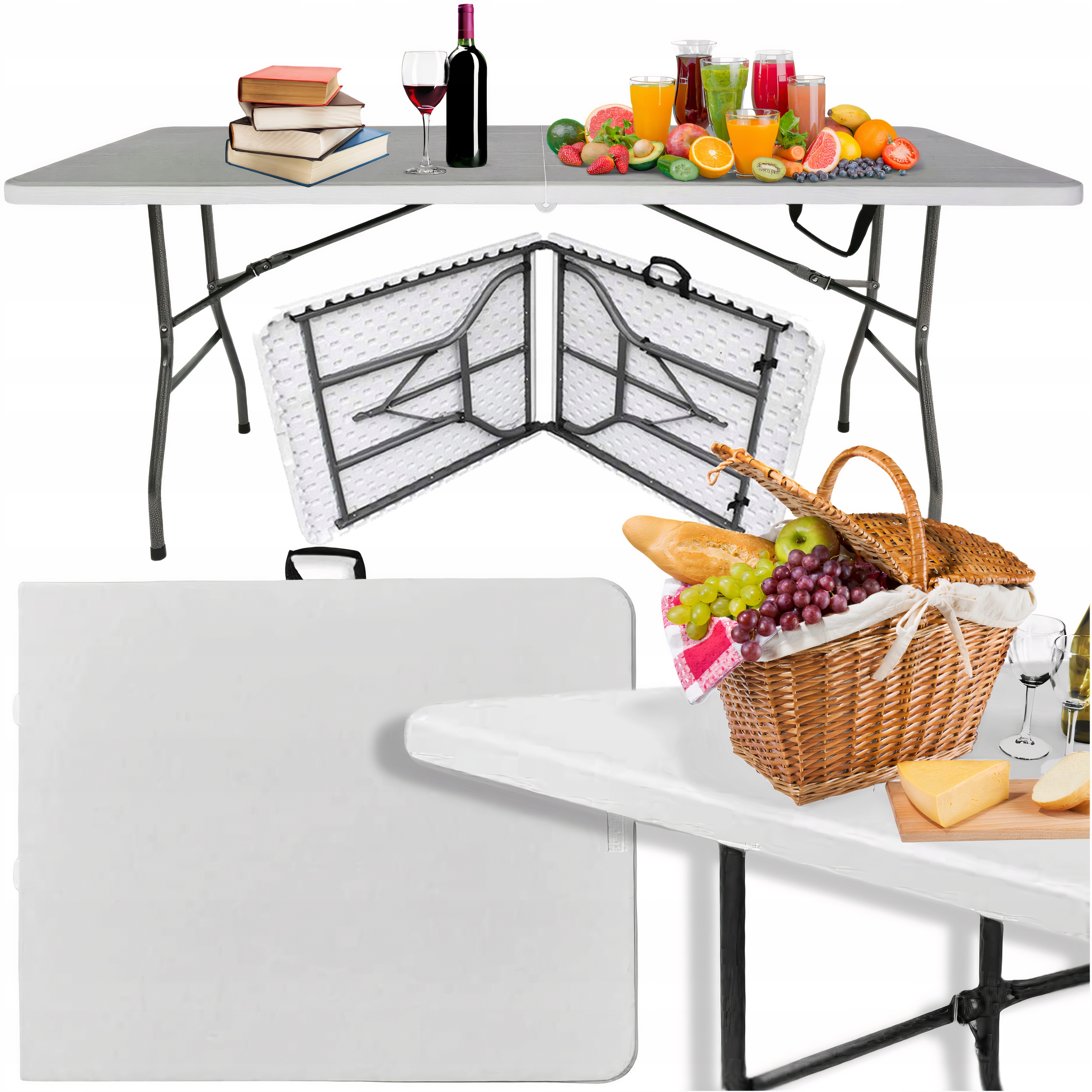 САДОВЫЙ СТОЛИК СКЛАДНОЙ ЧЕМОДАН 180см БЕЛЫЙ