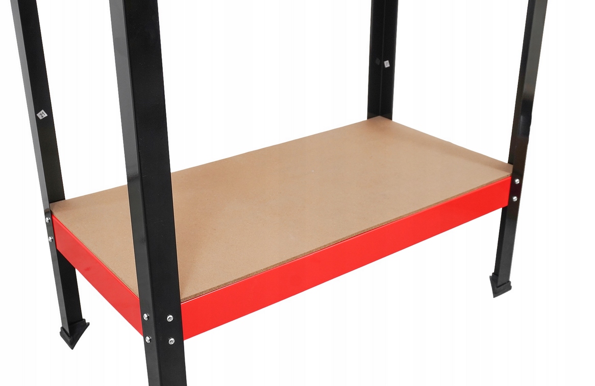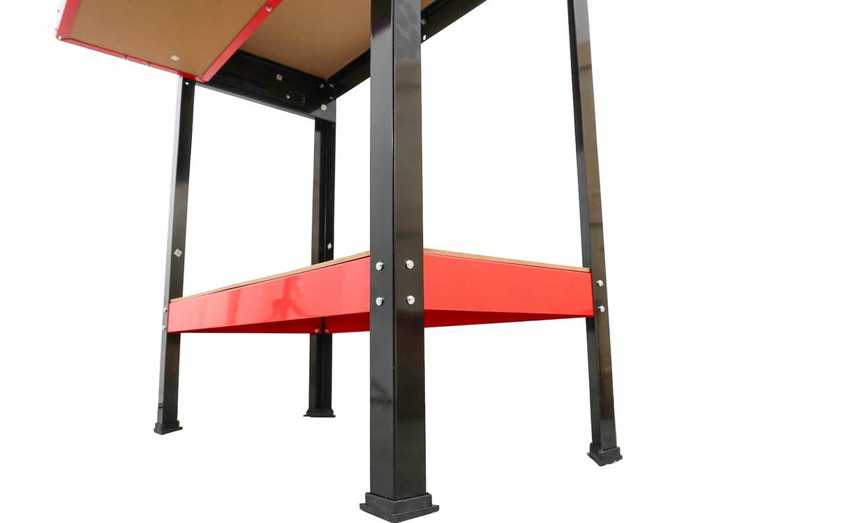 Стол, изготовленная из порошковой стали и плат MDF. Модель имеет дополнительные кронштейны, благодаря которой грузоподъемность на столешнике составляет до 100 кг, что обеспечивает стабильность и безопасность даже при тяжелой работе.
