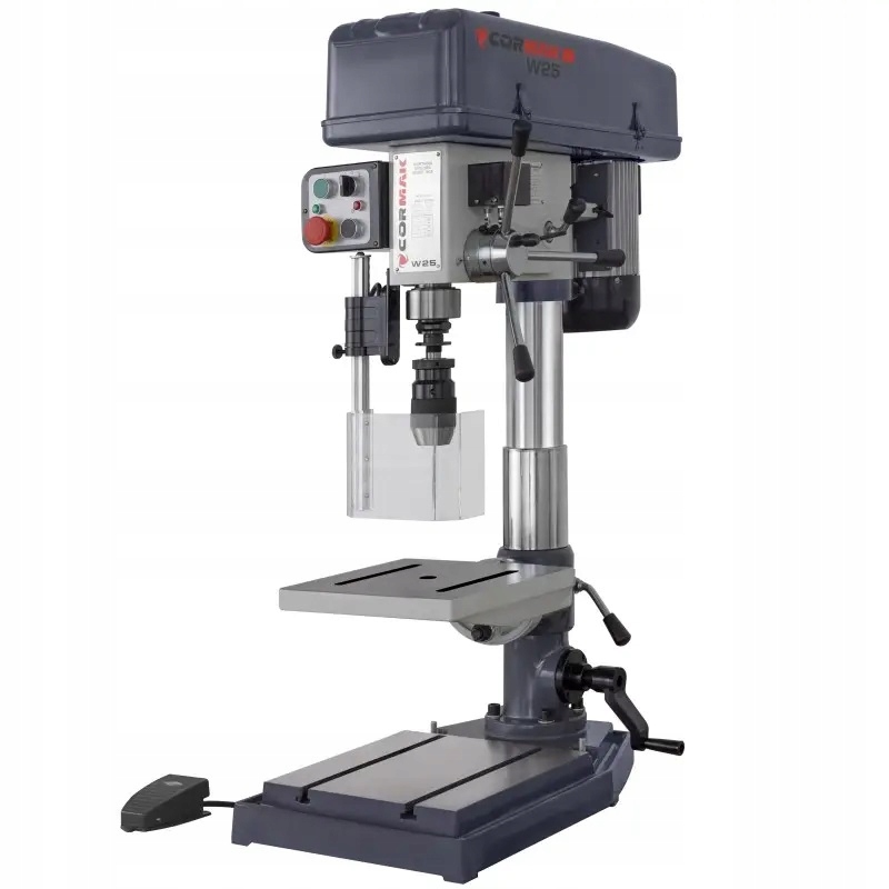 Настольная дрель W25 — это машина, сочетающая в себе мощность и точность. Он характеризуется прочной, жесткой конструкцией, высокой эффективностью и точностью. Устройство оснащено поворотным рабочим столом с регулируемой высотой и функциями нарезания резьбы с автоматическим изменением направления вращения шпинделя.