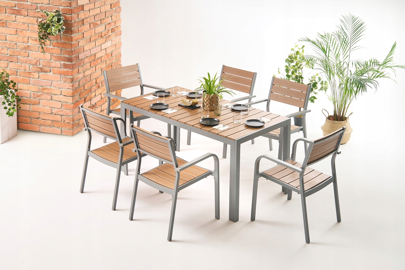 Прямоугольный садовый стол, изготовленный из композитных плат WPC и алюминия. Имитация дерева) h2>
