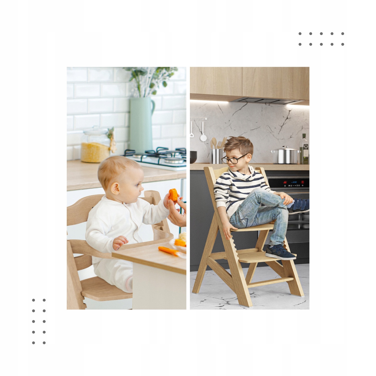- Функциональность стульчика для кормления увеличивается за счет съемного подноса с пластиковая крышка. Это решение гигиенично и предотвращает изменение цвета деревянных подносов.
