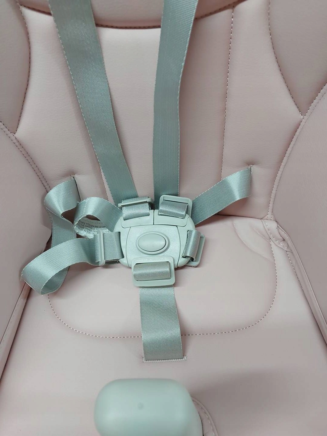 Также оснащен двойным подносом, регулируемой подставкой для ног и 5-точечным ремнем безопасности. Очень компактный размер, его легко хранить, когда он не используется.