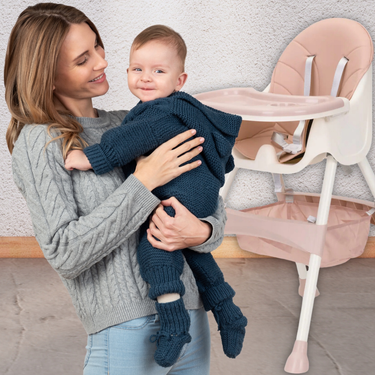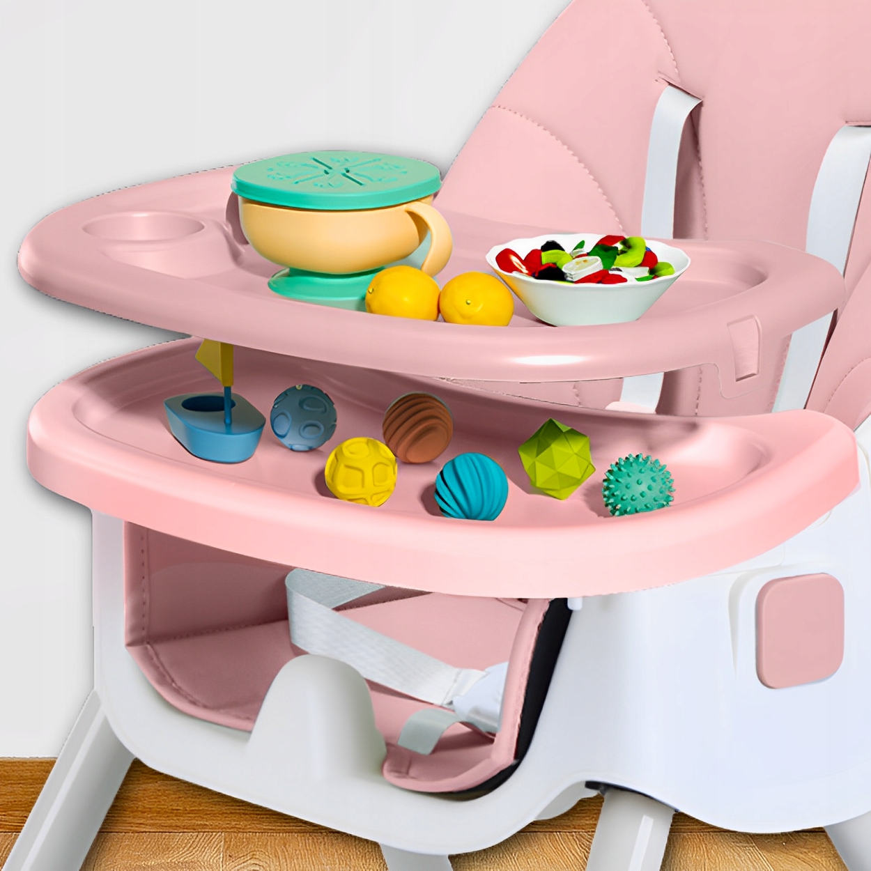 Стульчик 3в1 – идеальное решение для ежедневного питания вашего ребенка. Кресло легкое, мягкое и удобное в использовании. Стул подходит, когда ребенку исполнилось 6 месяцев. Имеет съемную обивку из практичной экокожи, которая легко чистится и удобна в использовании. Столешница имеет 3 уровня регулировки расстояния и съемный поднос. Дополнительное преимущество: 4 нескользящие ножки с соответствующим расстоянием между ними, обеспечивающие устойчивость стула. Дополнительный профилированный элемент безопасности между ножками, предотвращающий выскальзывание ребенка из кресла